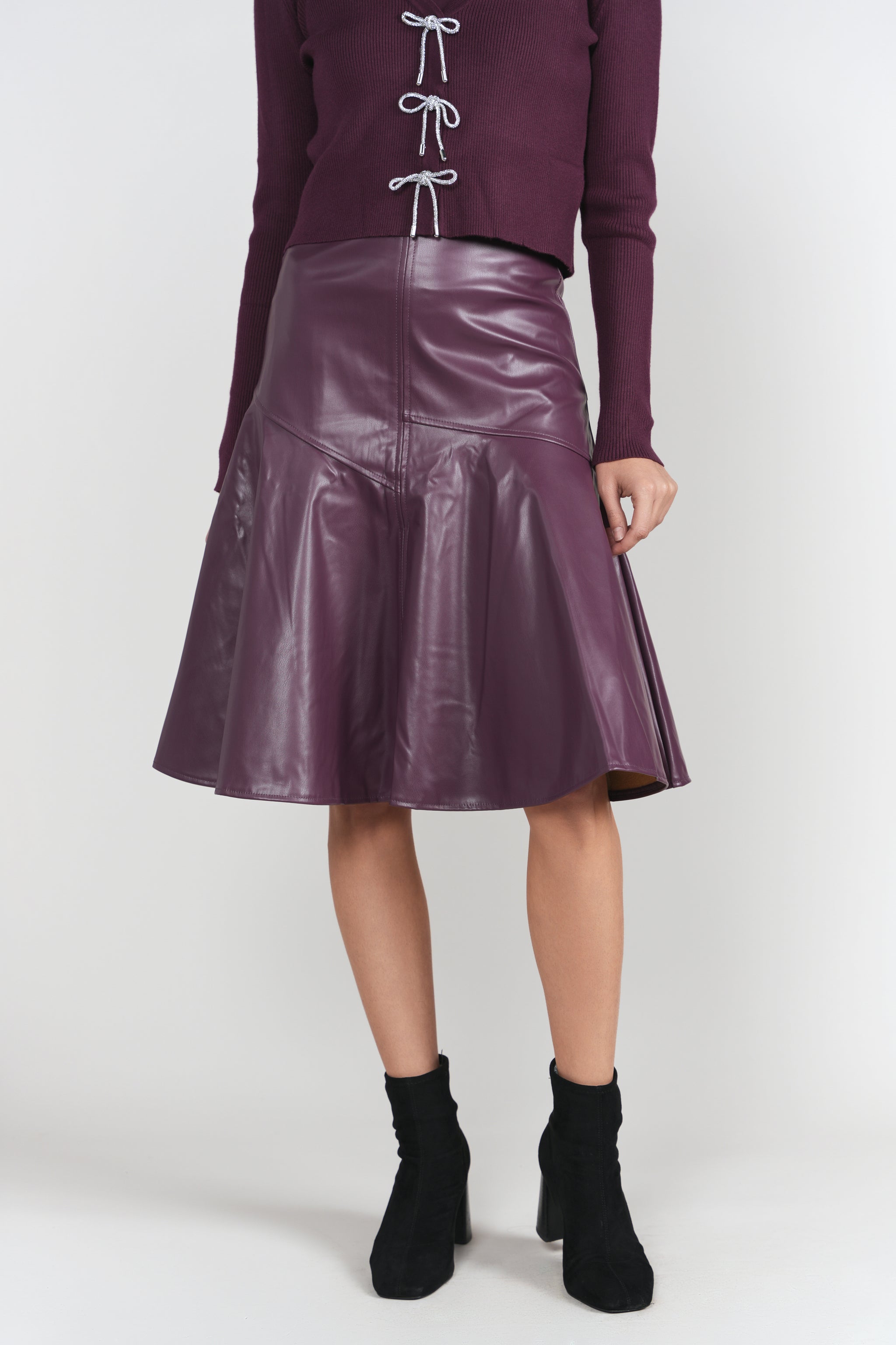 Drop Hem Leather Skirt- Eggplant