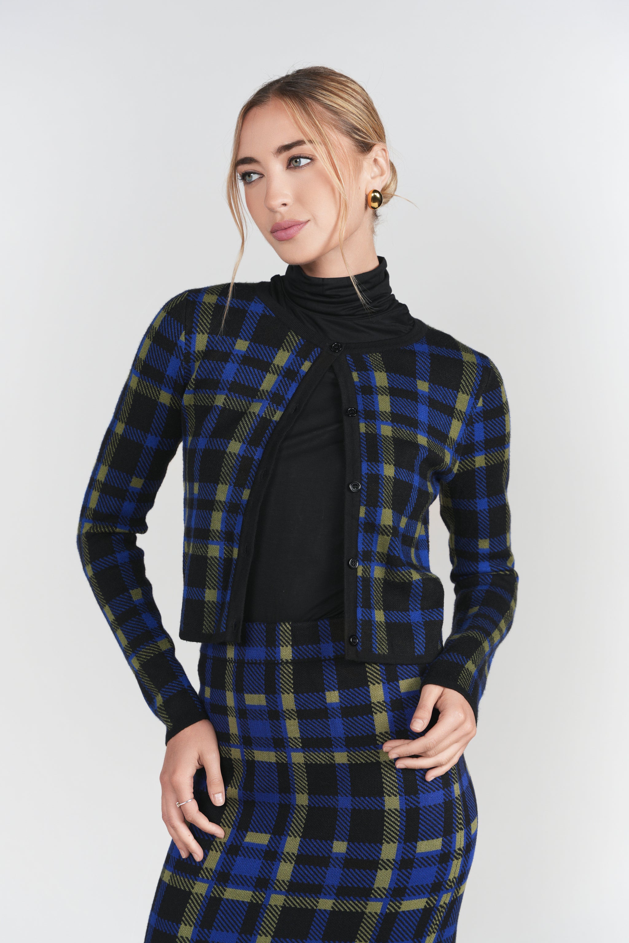 Jacquard Knit Cardigan- Plaid