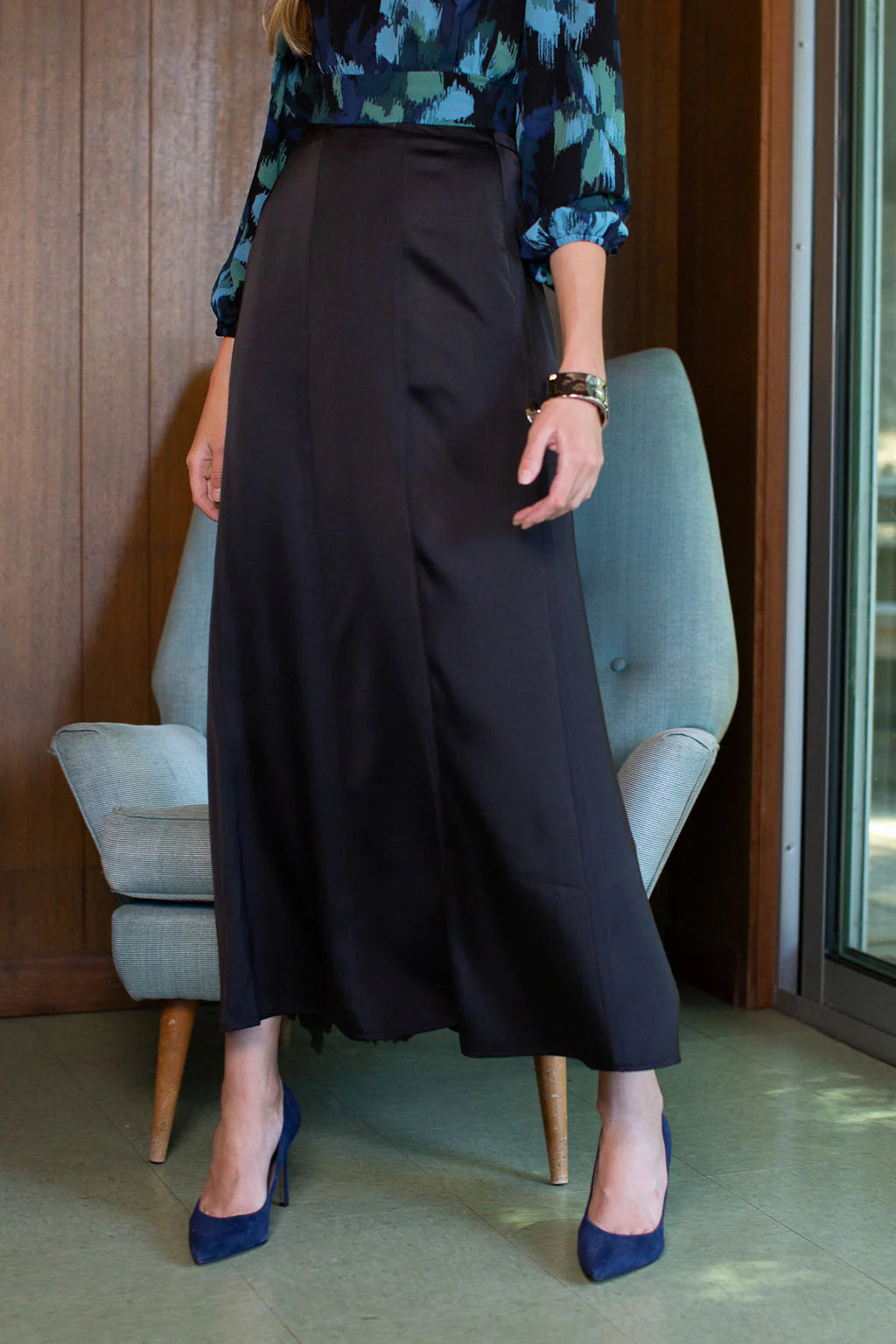 Paneled Slip Skirt Maxi- Black