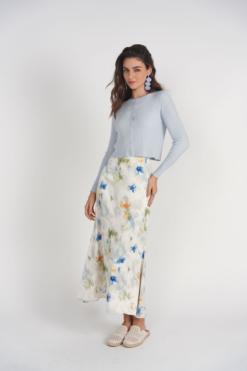Bias Cut Midi Skirt- Abstract Floral Satin