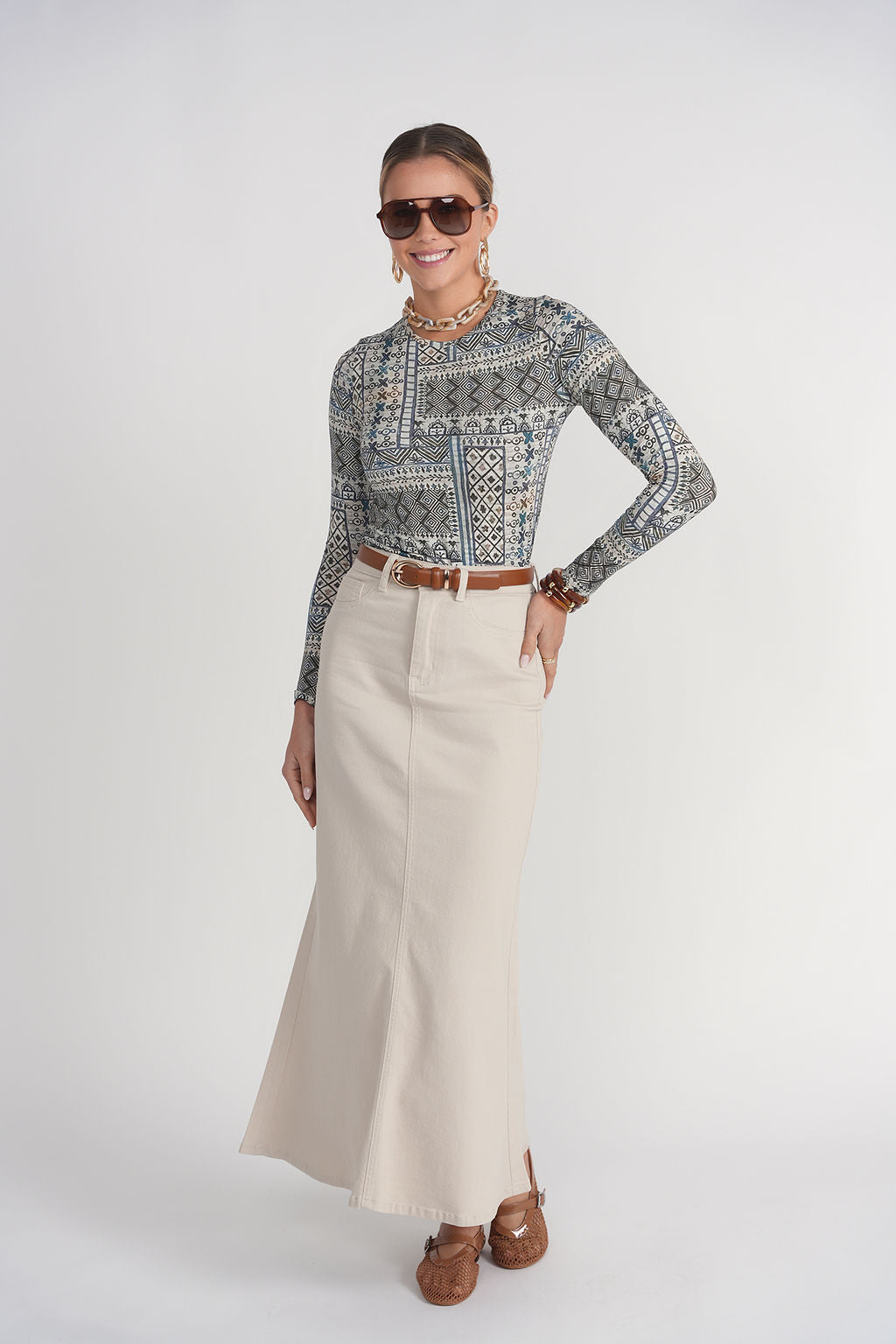 Mermaid Denim Maxi Skirt- Stone