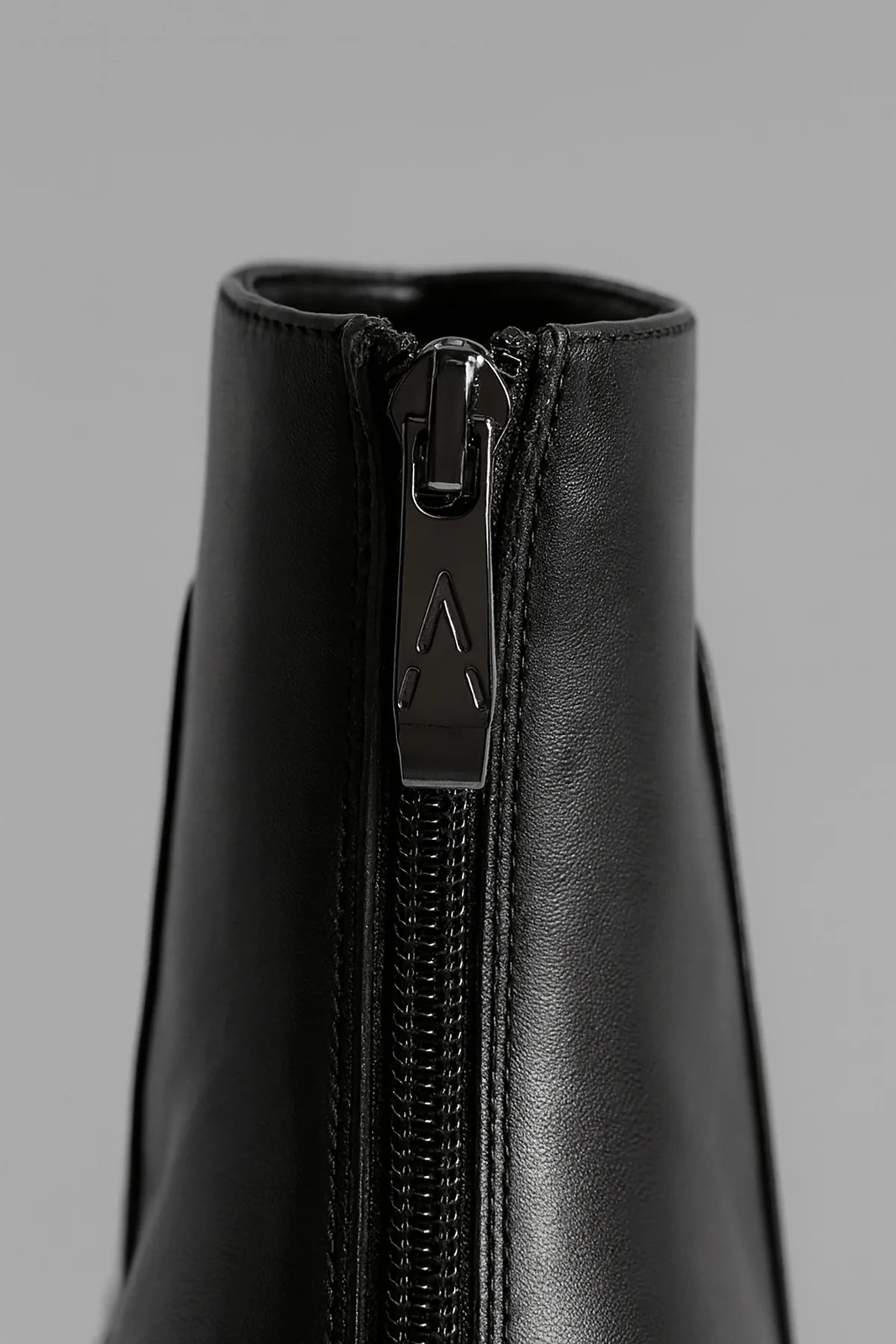 Crafted from supple sheepskin leather, the Draper Boots combine elegance with edge. Featuring chic gunmetal studs and a discreet zipper at the back, these versatile booties offer both style and easy wear. Perfect for elevating any ensemble with a refined yet contemporary touch.
