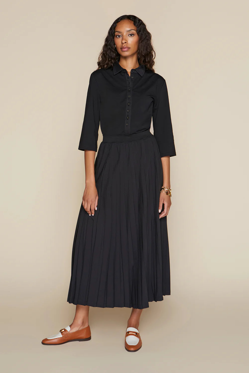 The Maxi Rachel Skirt combines effortless elegance with practical comfort. Crafted from lightweight, moisture-wicking fabric, this floor-length silhouette features refined pleats that create graceful movement and dimension. The stretch waistband ensures a comfortable fit, while the easy pull-on design makes dressing seamless. A thin lining provides subtle coverage without added bulk, allowing the skirt to drape beautifully. Perfect for transitioning from day to evening occasions with understated sophistication.