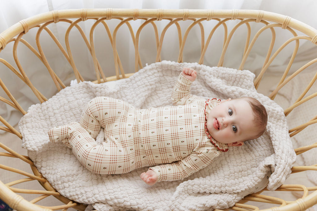 Cotton Floral Plaid Collection - Footie + Beanie