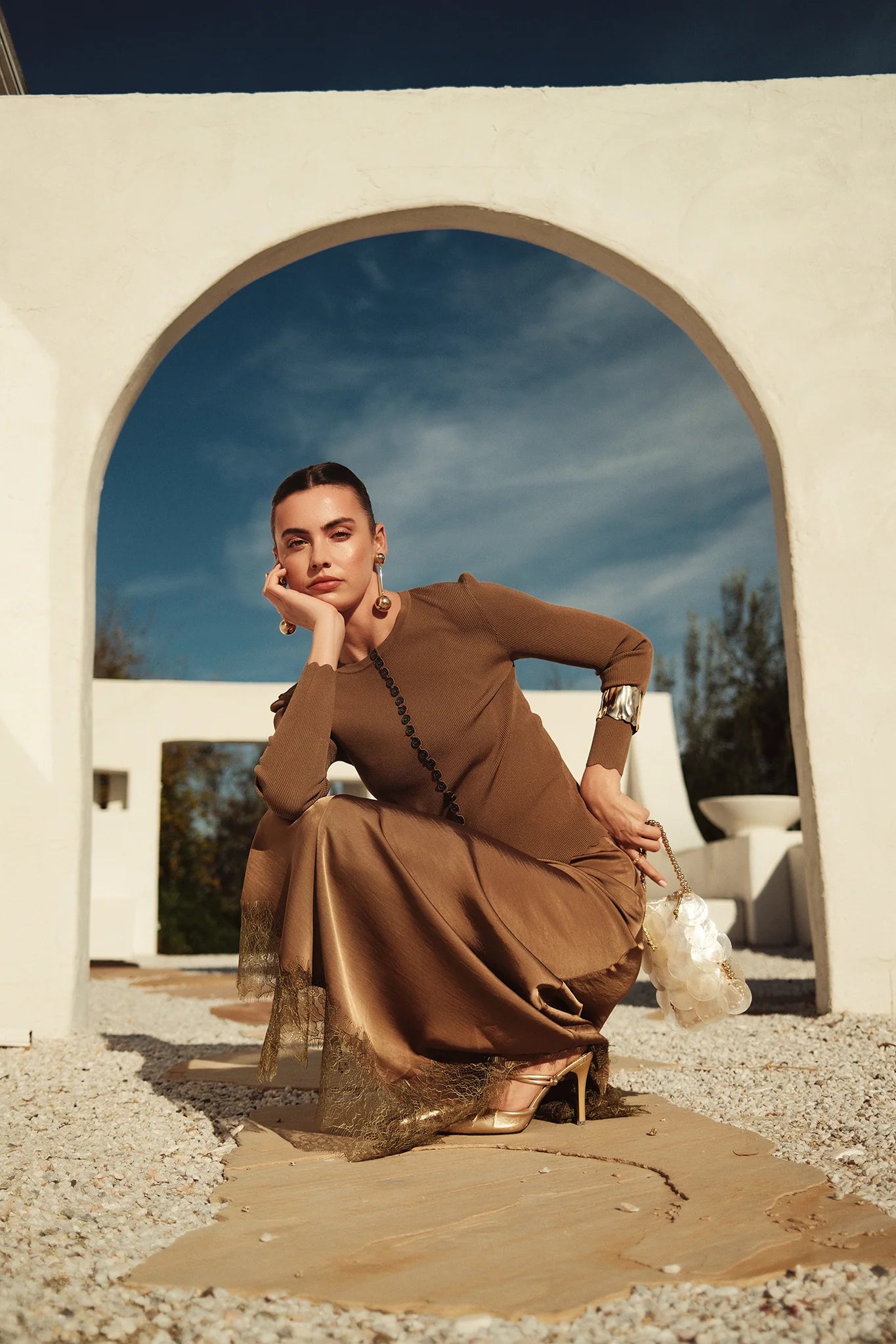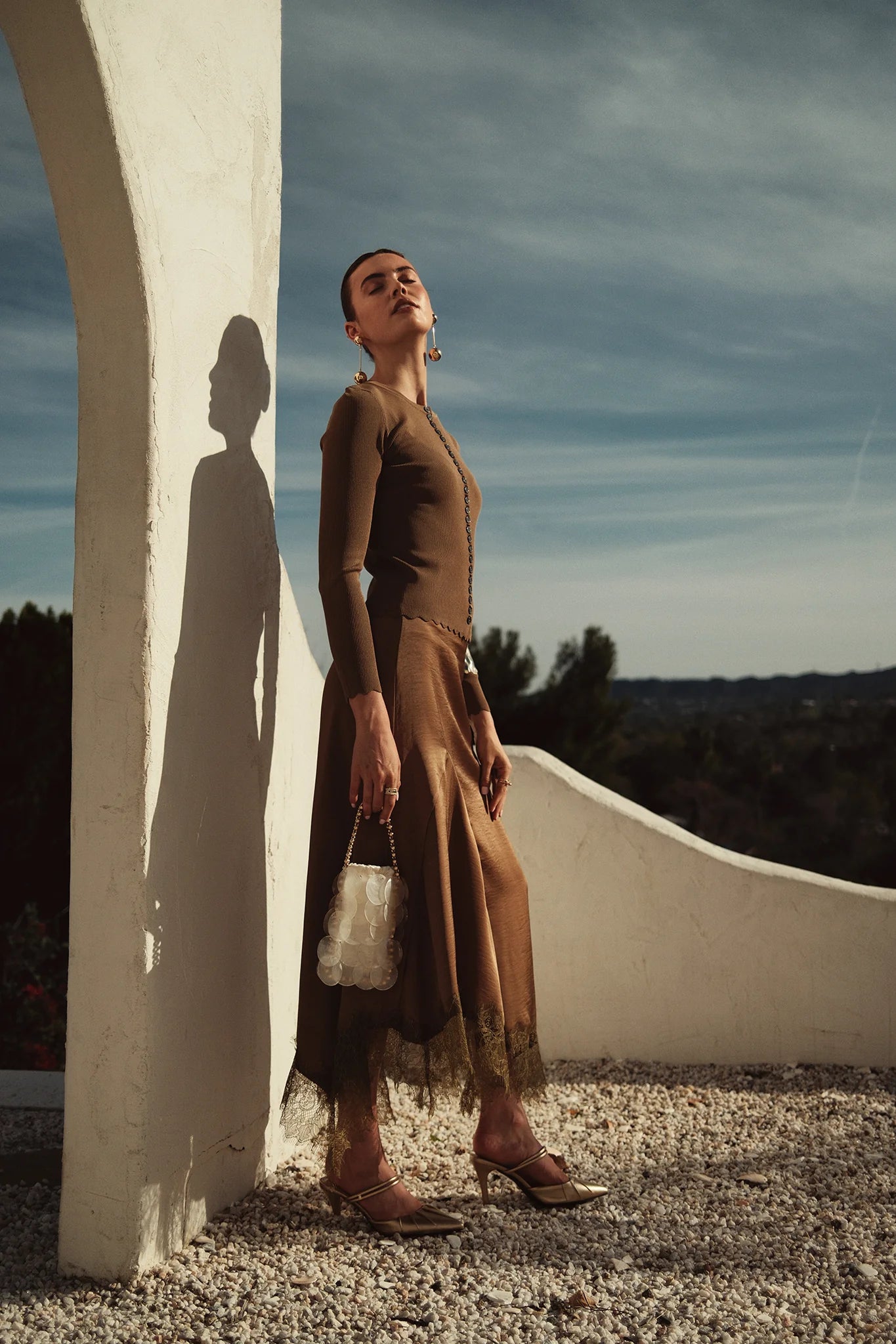 Bliss Asymmetric Hem Lace Bottom Skirt Olive