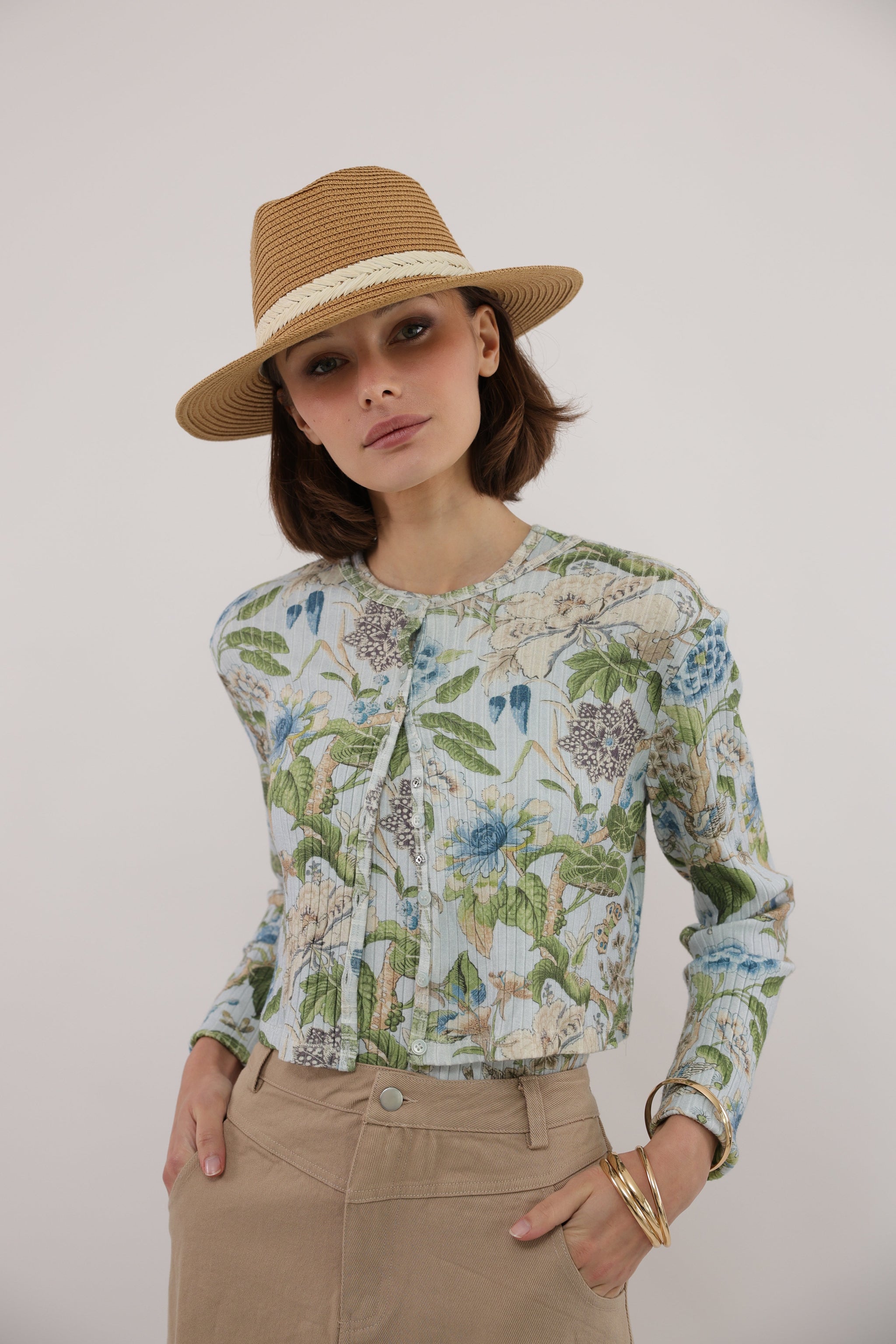 The Tomorrow Twin Set Top is a charming floral cable knit top with a tank underlayer, creating a stylish, layered look without the hassle