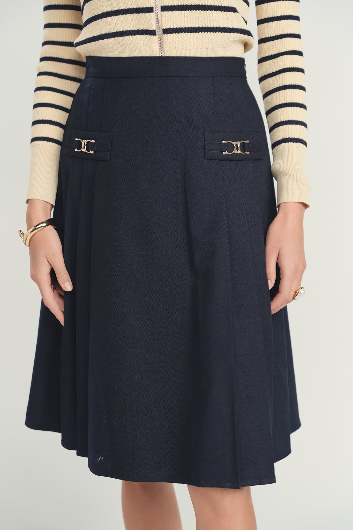 The Wool Pleated Skirt in Navy is a timeless piece with elevated detail