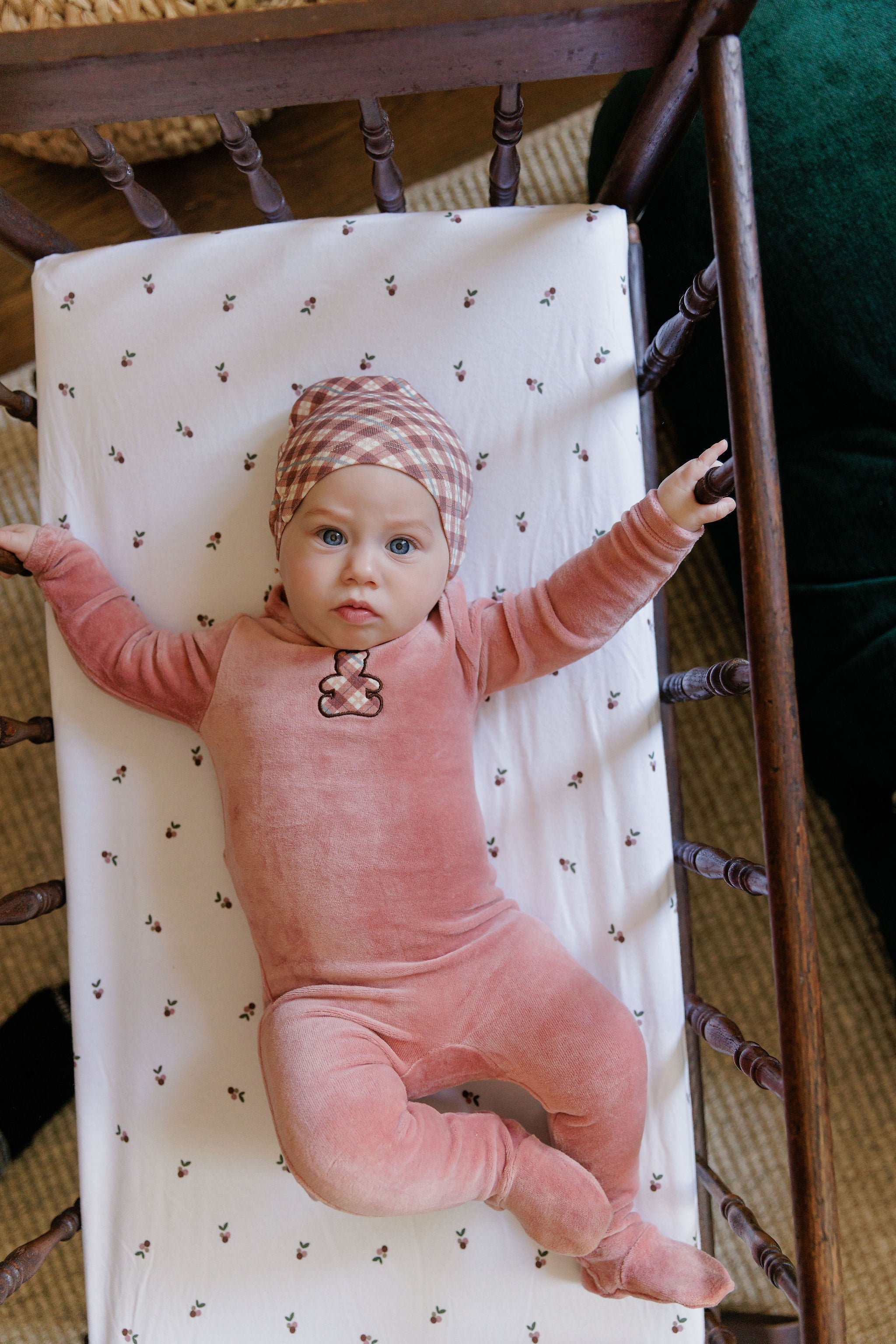 Keep your little one cozy and comfortable with the Velour Plaid Bear Collection Footie
