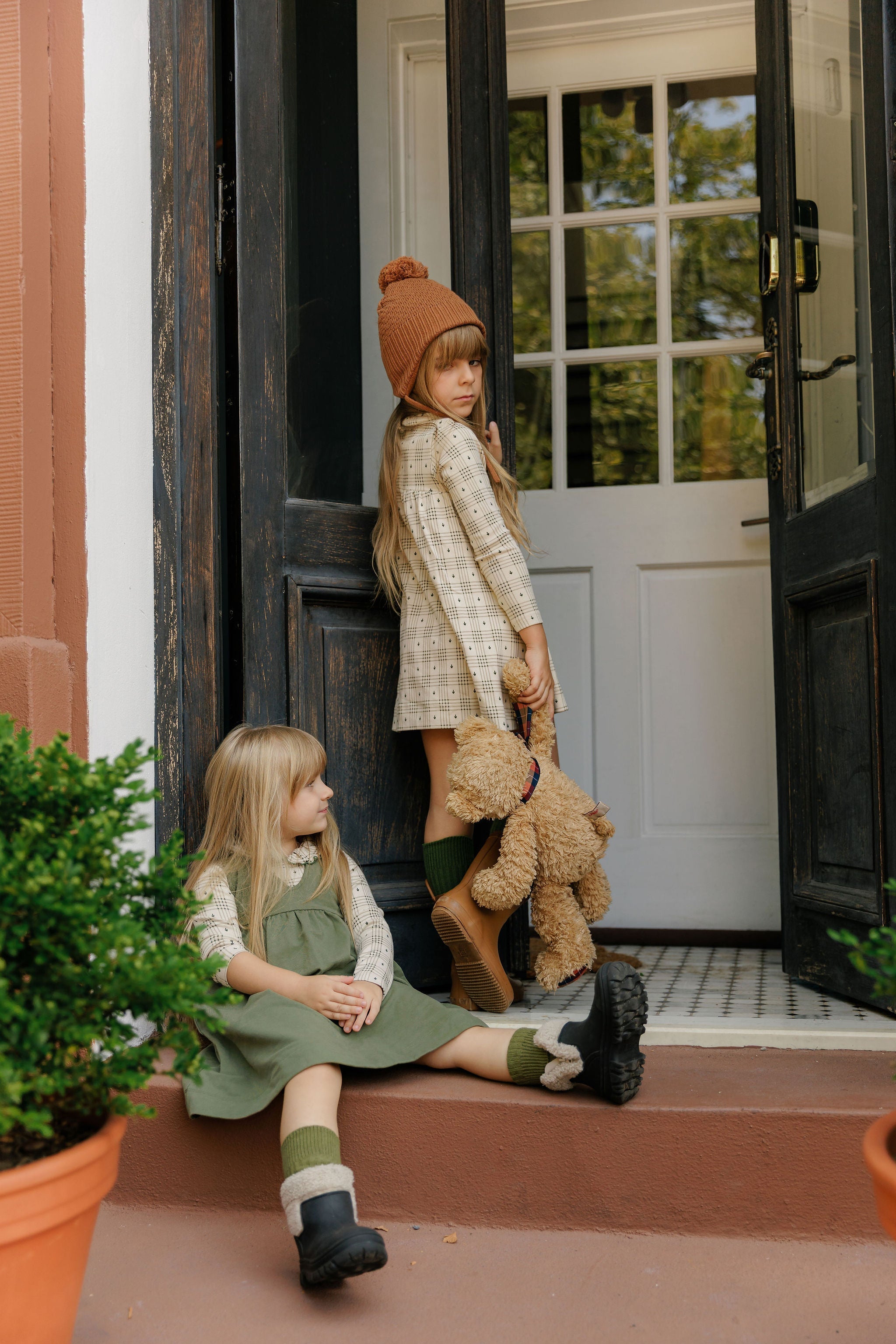 This solid color jumper from the Cotton Floral Plaid Collection offers a simple yet stylish piece for girls