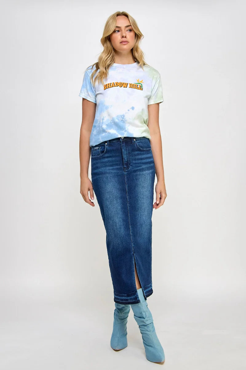 The Easton Skirt is your go-to denim maxi — structured yet easy, with a soft stretch that moves the way you do