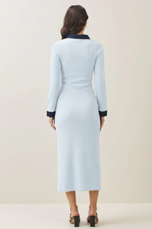 Designed with long sleeves and a structured polo neckline, it’s the kind of effortless piece that works from day to night with a simple shoe swap