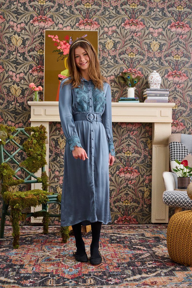 BABY BLUE W/ LACE DESIGN DRESS T-1127