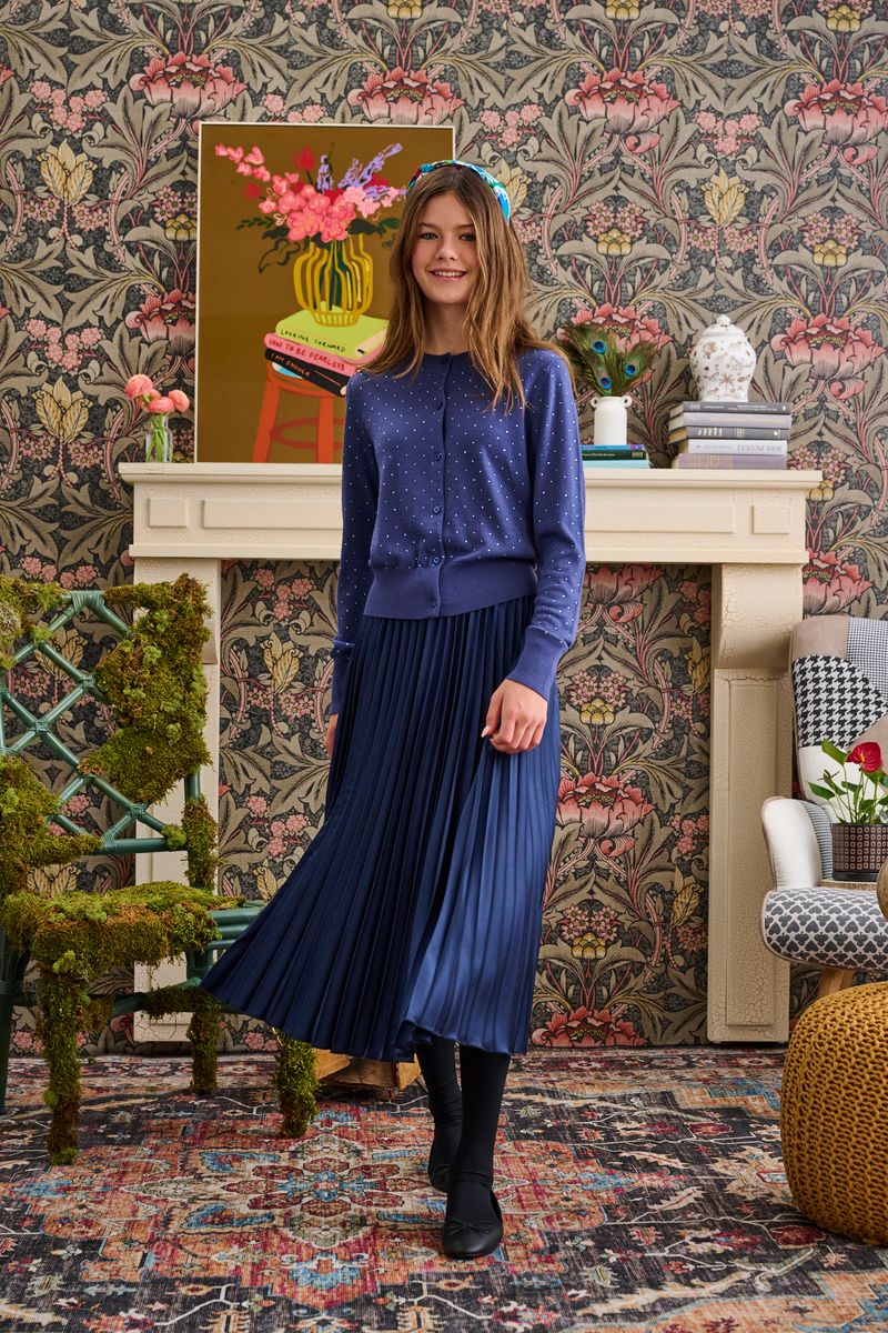 BLUE SATEEN PLEATED WAIST BAND SKIRT T-1114