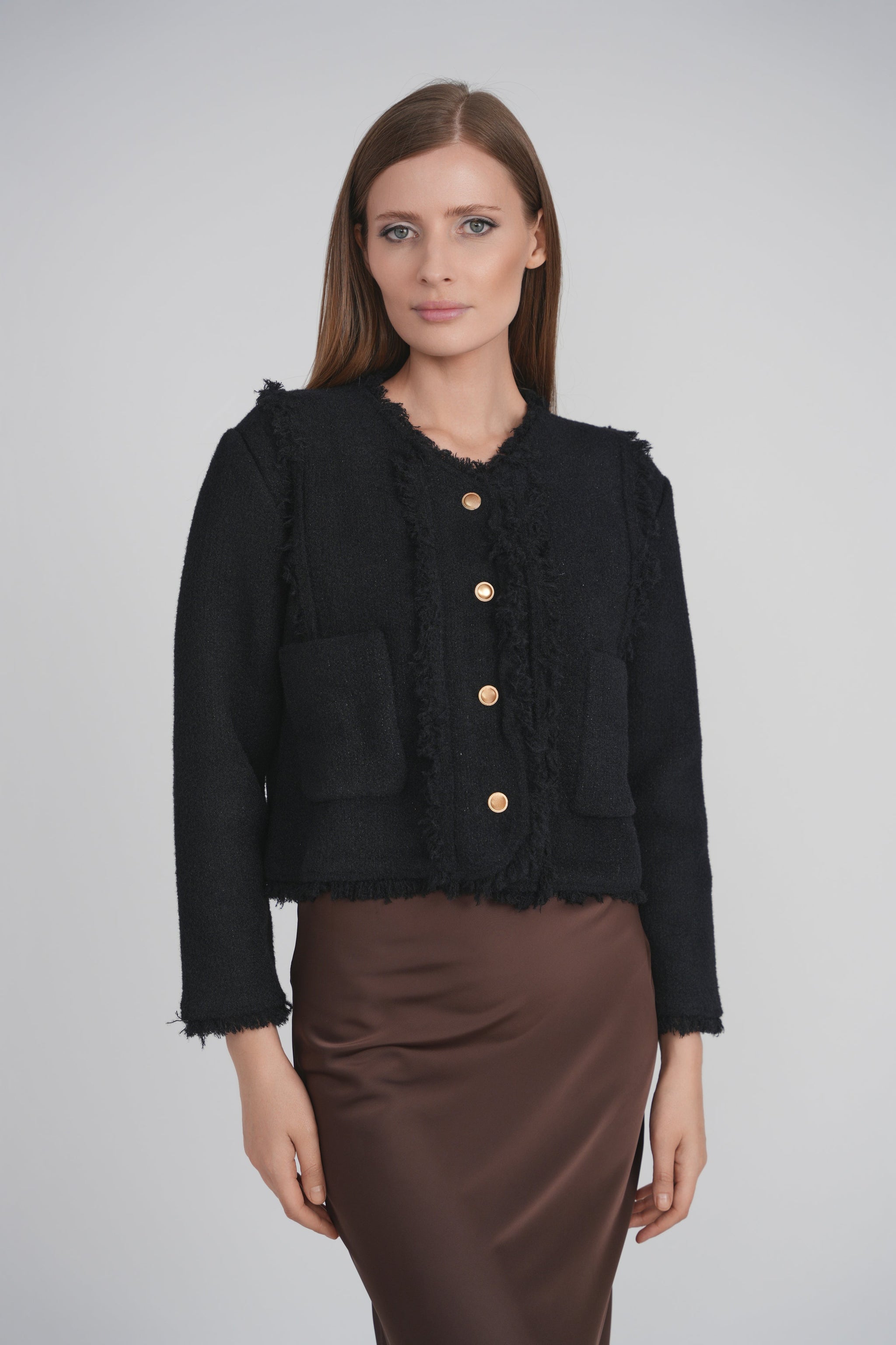 FRINGE TRIM JACKET (BLACK)