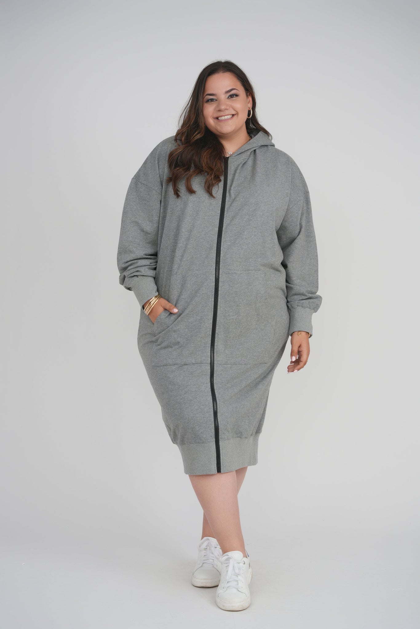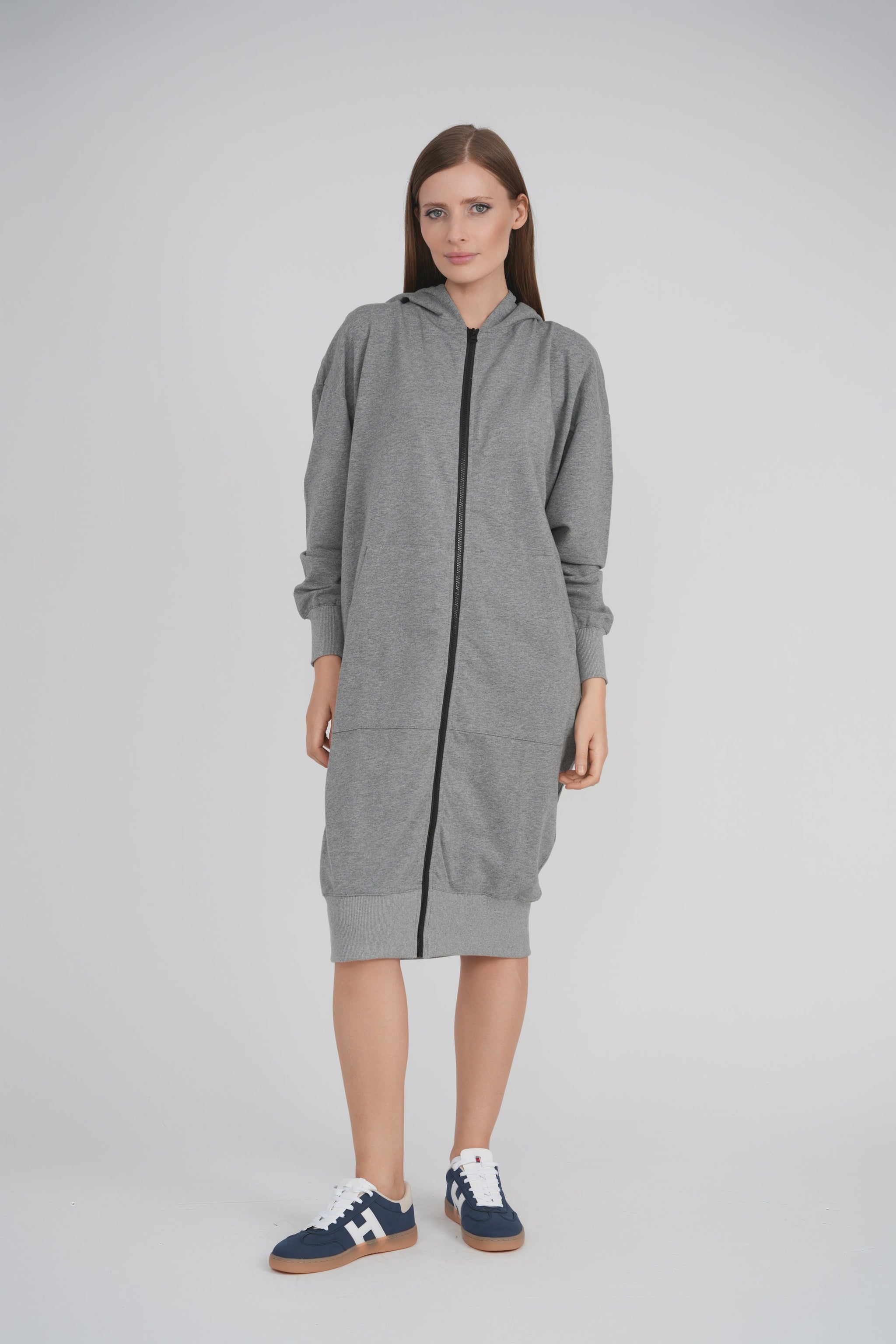 HOODIE ZIP UP DRESS LONG LENGTH 41" (CHARCOAL)