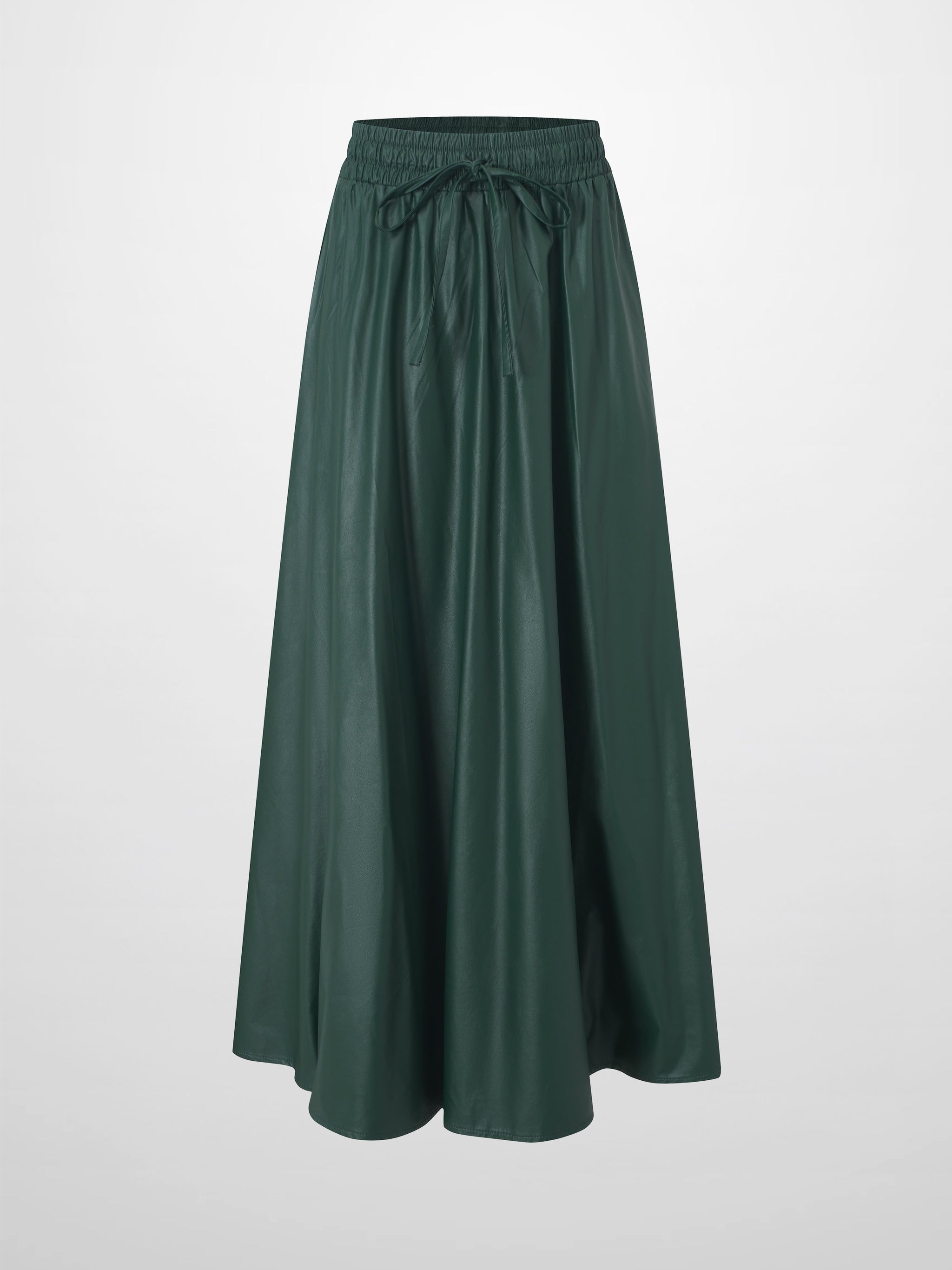 Drawstring Faux Leather Skirt-Hunter Green
