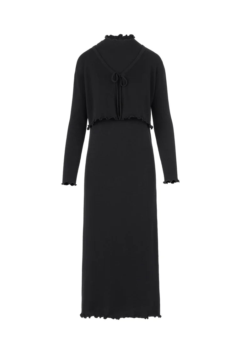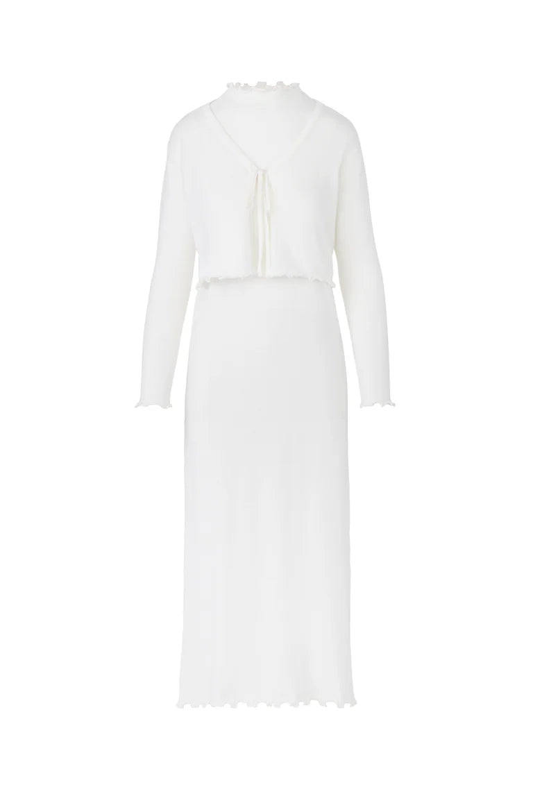 A modern two-in-one essential. This set features a sleek sleeveless knit maxi dress paired with a cropped cardigan shrug for effortless layering. Wear them together for a polished look, or style each piece separately for endless versatility.