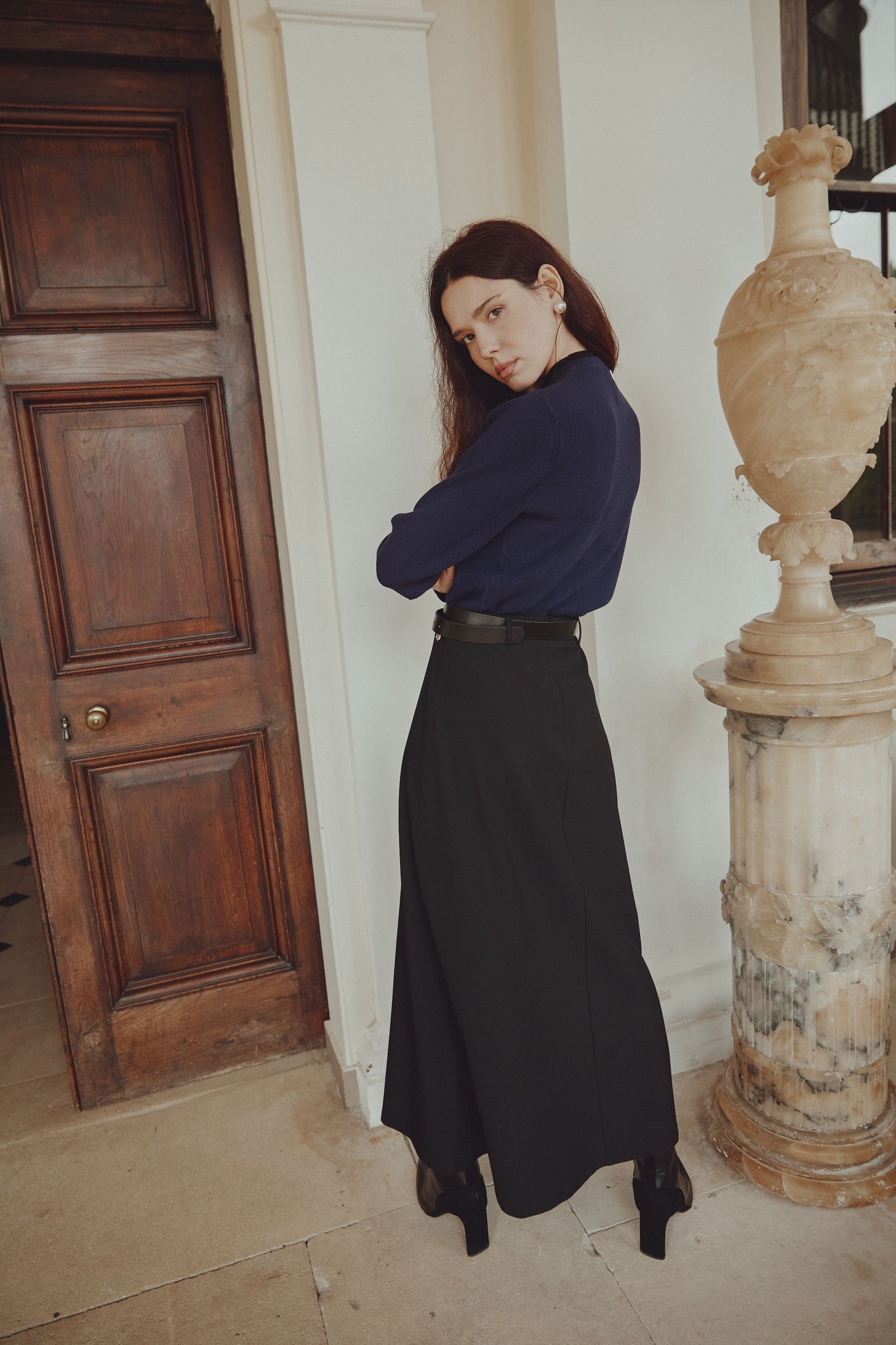 Belted Stretch Knit Maxi Skirt