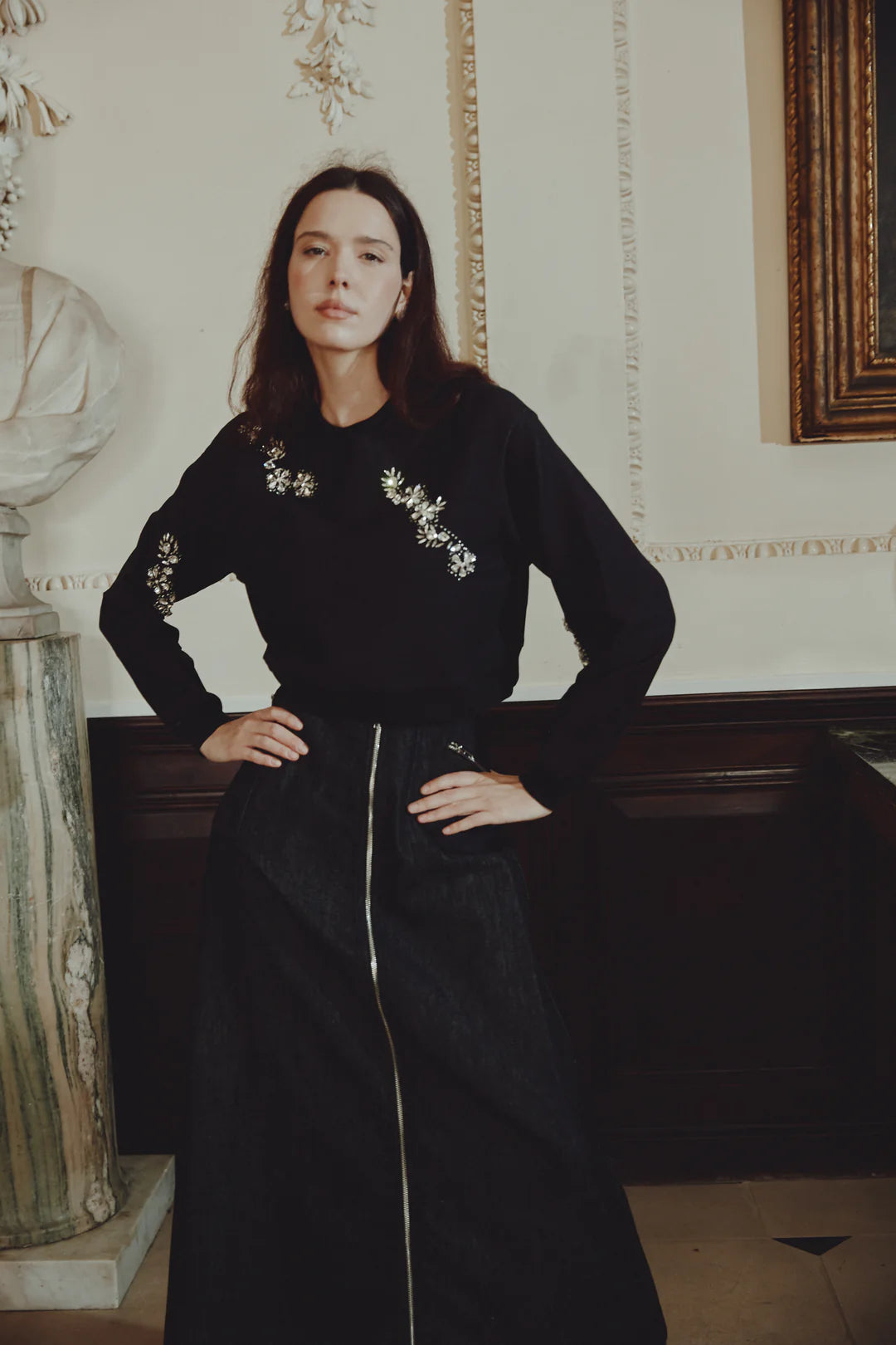Cropped Style Knit with Floral Stone Designs