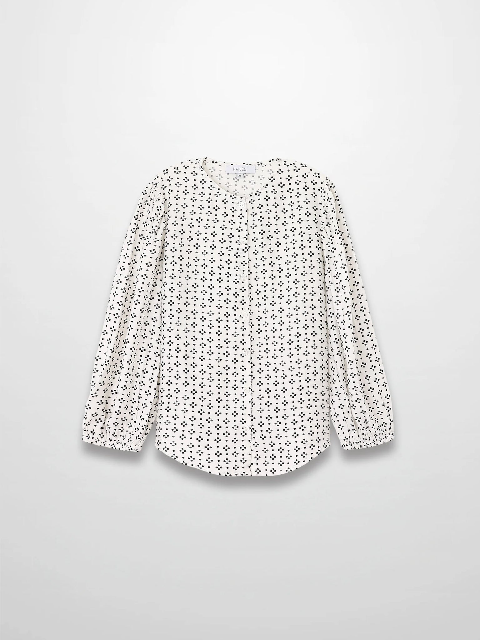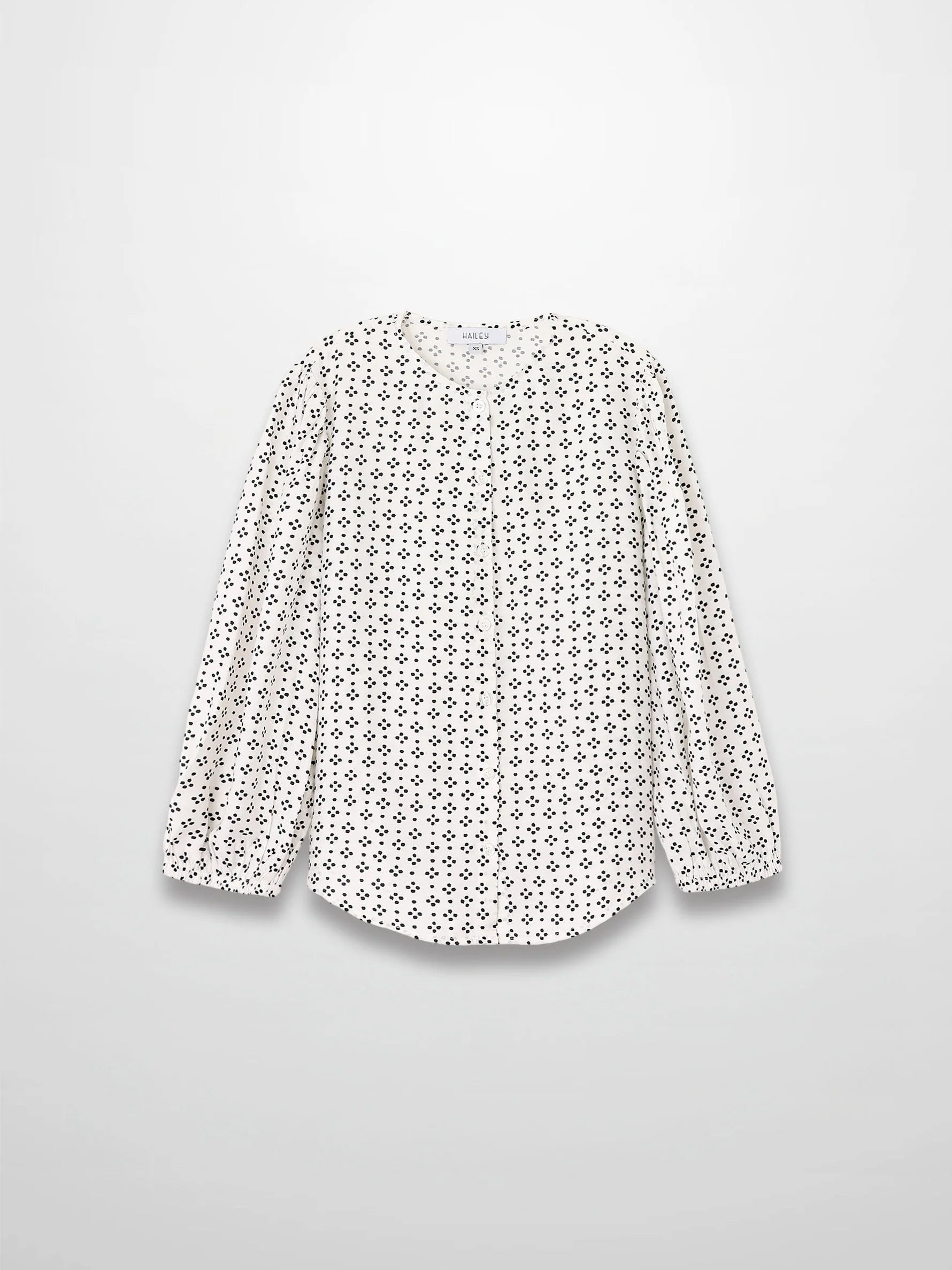 Puff Sleeve Button Down Blouse-Black/White Polka Dot