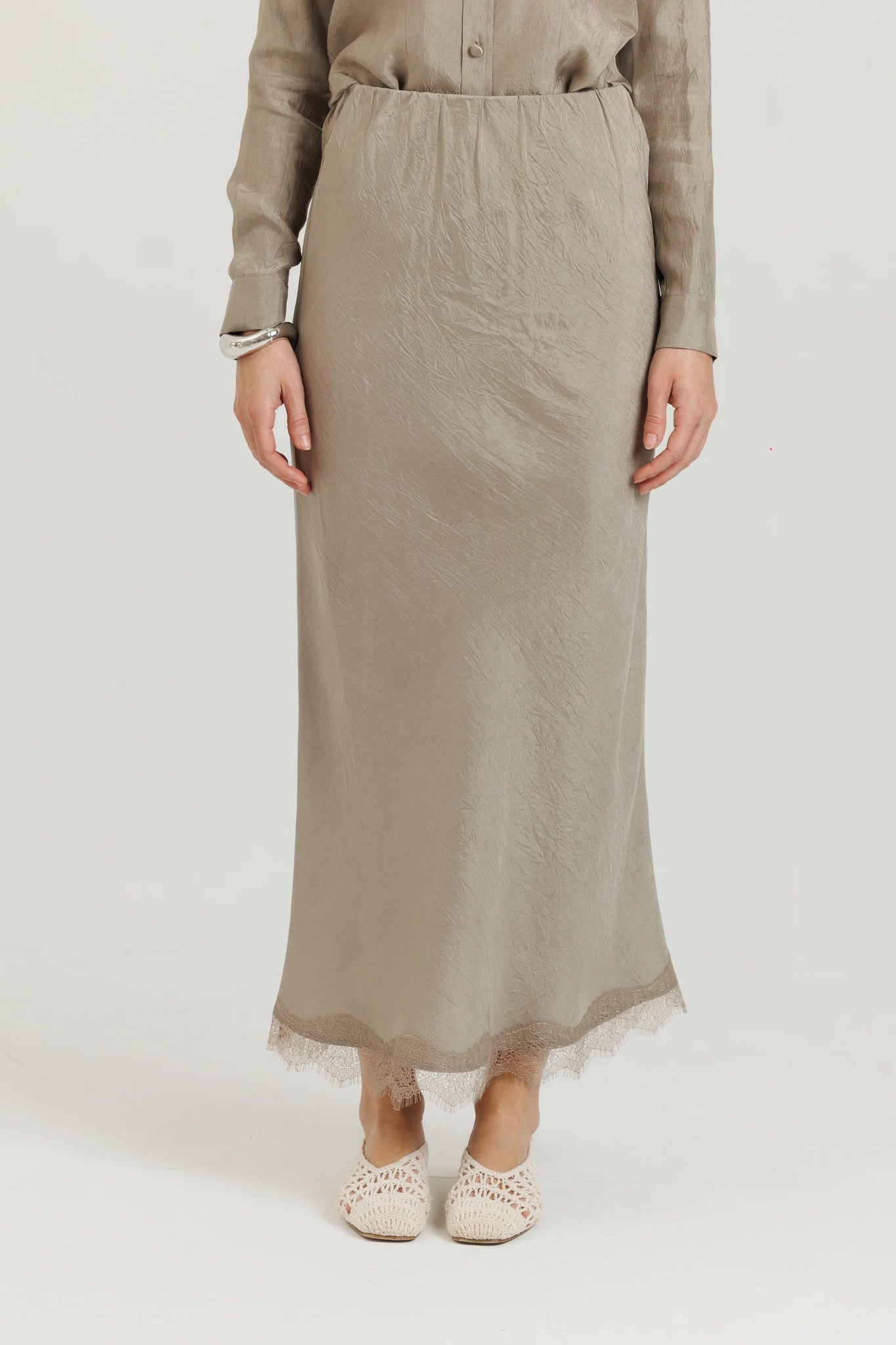 Lace Slip Skirt Stone
