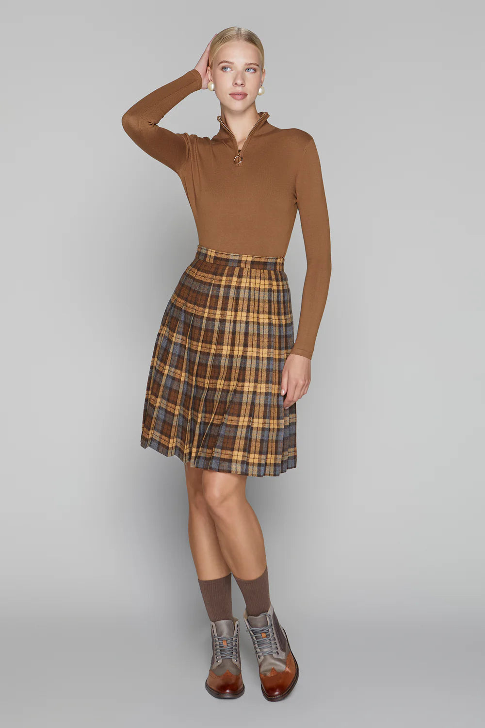 Briar Pleated Skirt in Cocoa / Cinnamon Plaid
