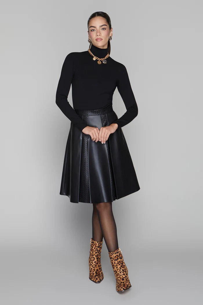 The Concord Skirt combines dual textures of woven and solid leather, creating a refined contrast that elevates its design. Featuring wide pleats, this skirt offers a graceful silhouette with movement and structure. Perfect for sophisticated occasions, it blends modern edge with timeless elegance.