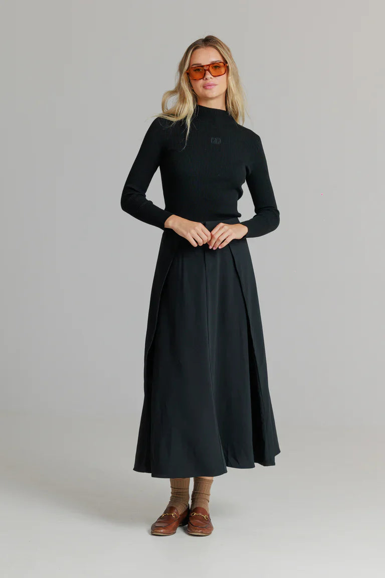 A timeless wardrobe staple, this navy maxi skirt features a flattering A-line silhouette and high-waisted fit