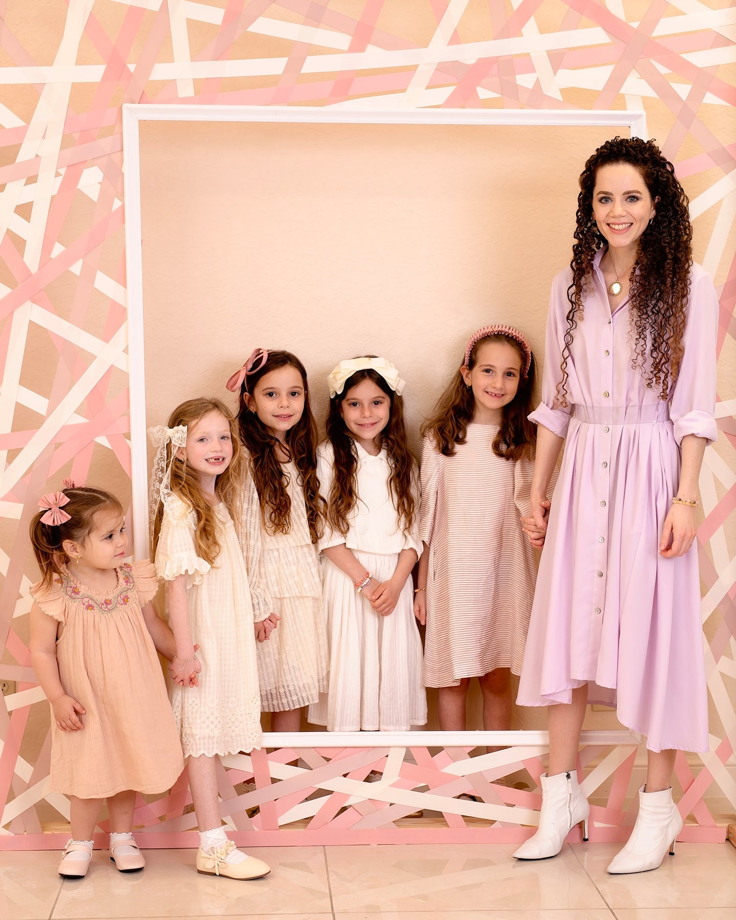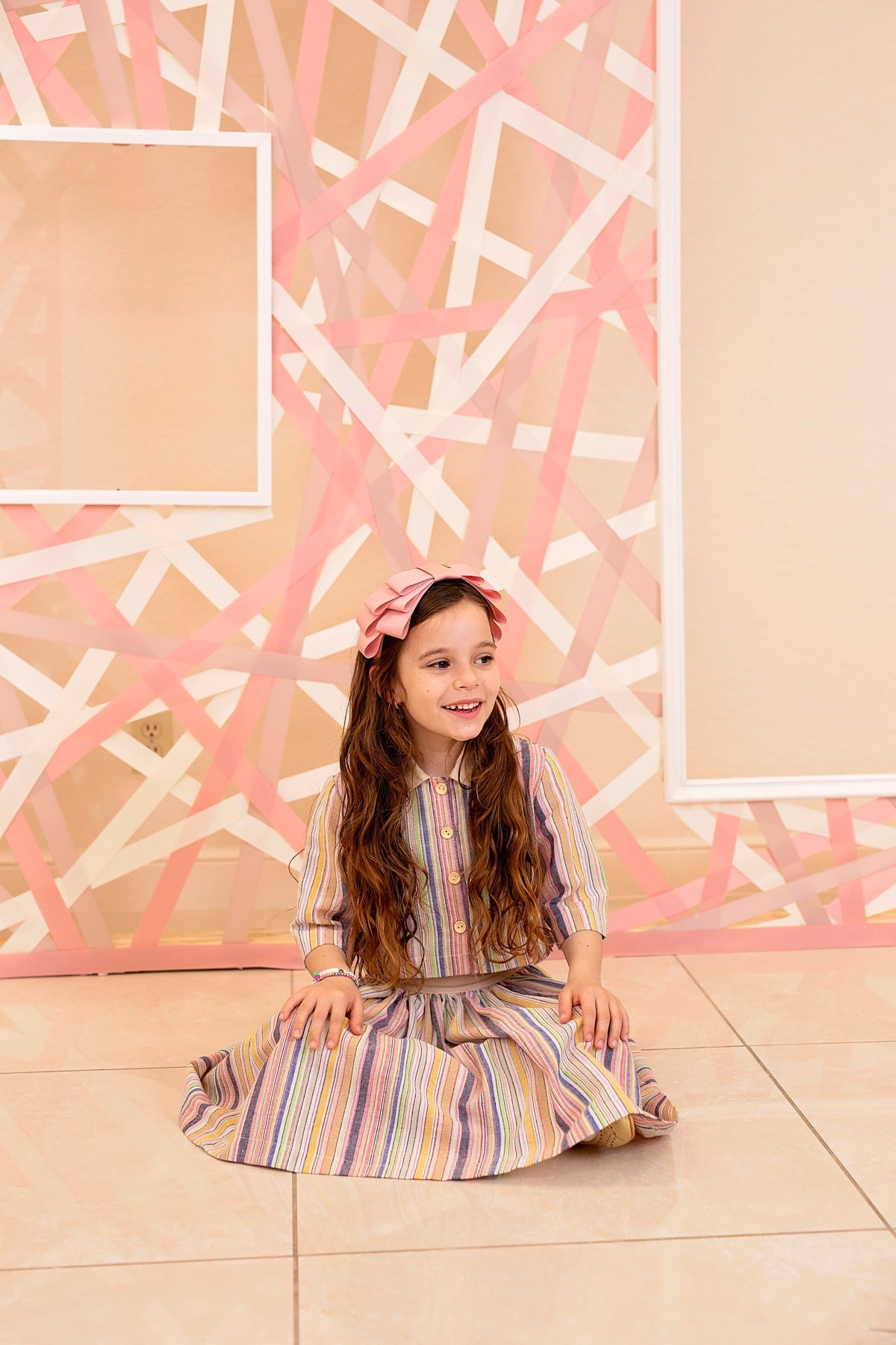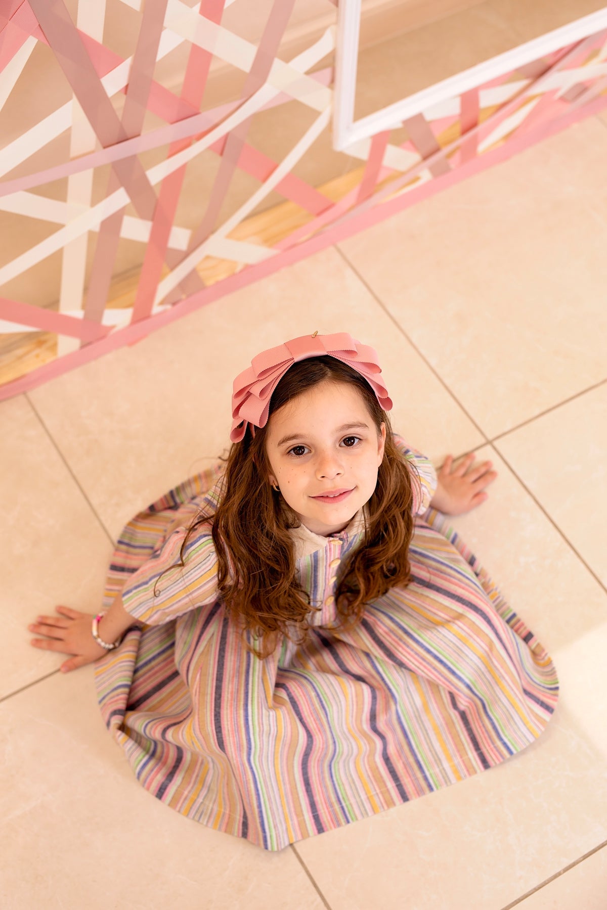 I fell in love with petersham ribbon, which is similar to grosgrain ribbon but has a scalloped-like edge, when we made our Grosgrain Bow Clip Sets. I wanted to create a collection using Petersham Ribbon. The first headband we made was this one! This headband's inspiration came from two of our other popular styles: Heather and Pleated Ribbon. It was created using wide ribbon formed in uneven loops to create this lovely style! Look how it looks on our models!