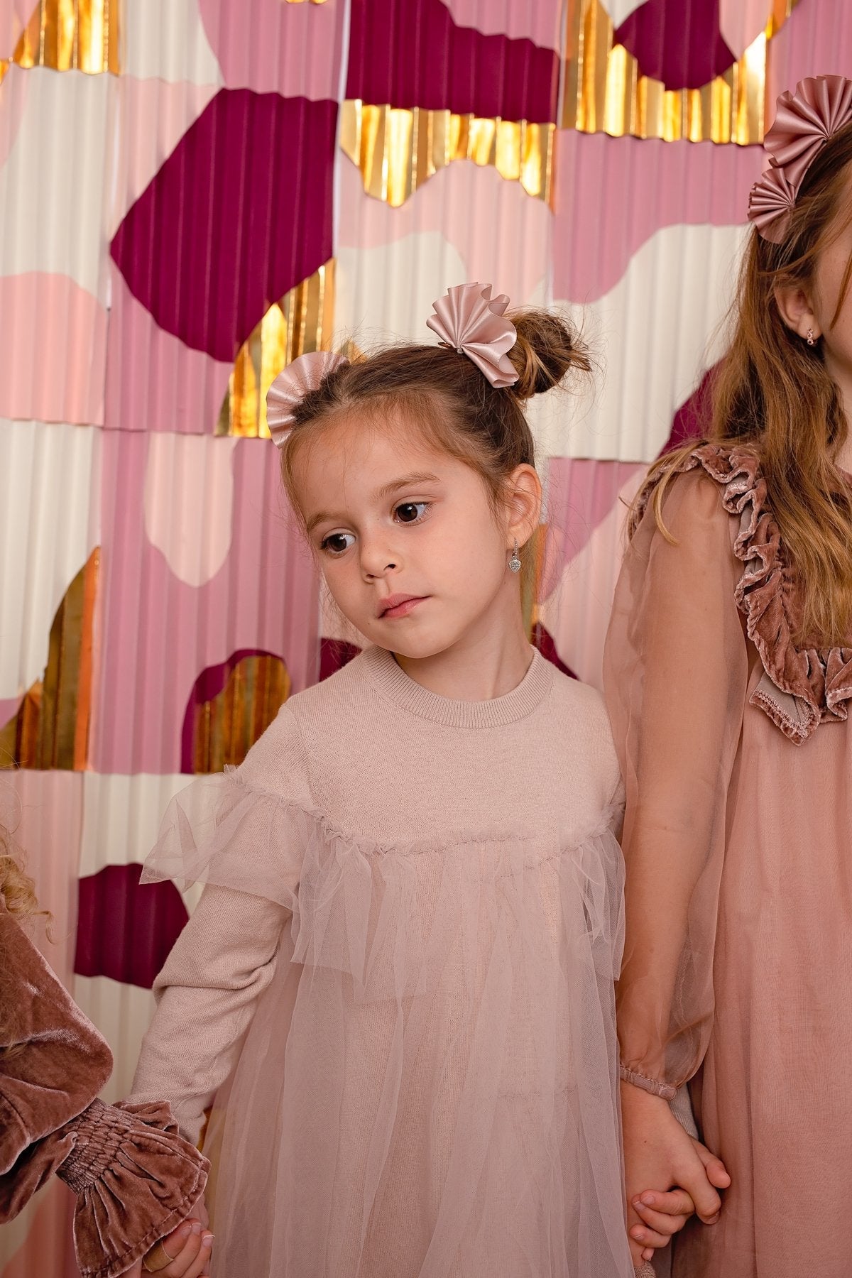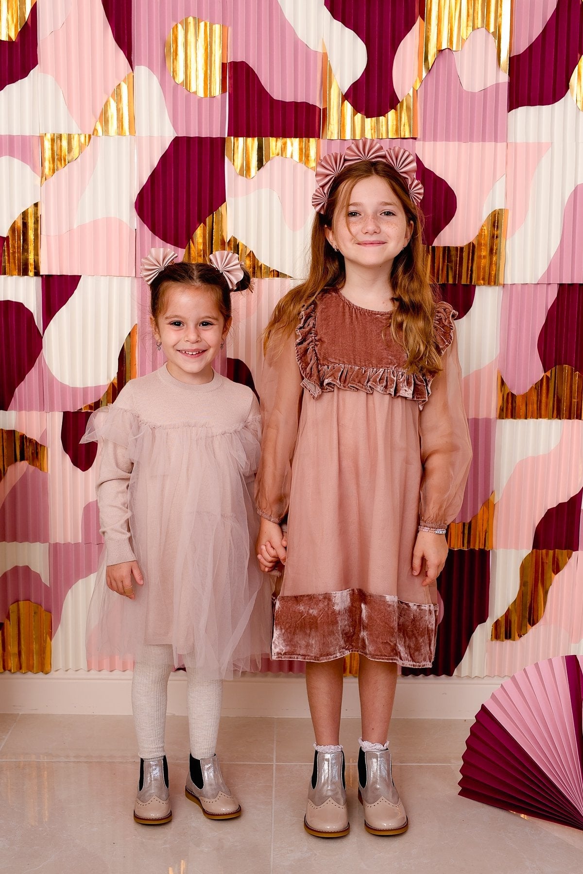 I've been playing around a lot with pleating and the different ways to ruffle fabric. So I picked up some satin ribbon and started folding. I had no vision in mind, I was really just playing. And then boom, somehow a couple styles popped out! I was obsessed and based our entire photoshoot backdrop off of it! This clip is similar to our pirouette clip, but lays differently in the hair. (Note the placement of the clip).