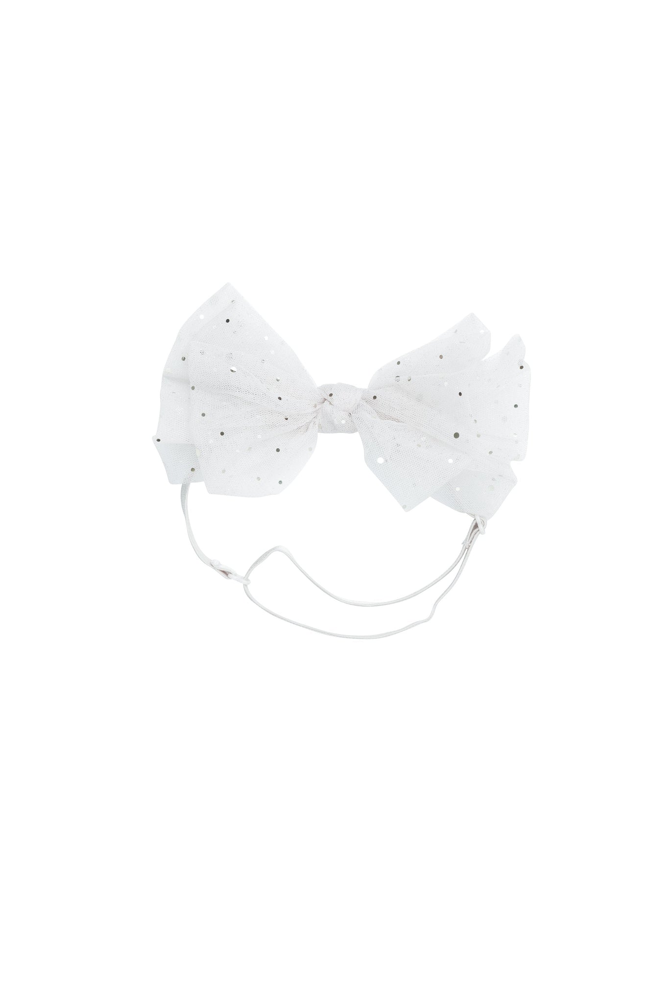Ava Dot Headband is a fine tulle bow with tiny dots on a headband or hairwrap.