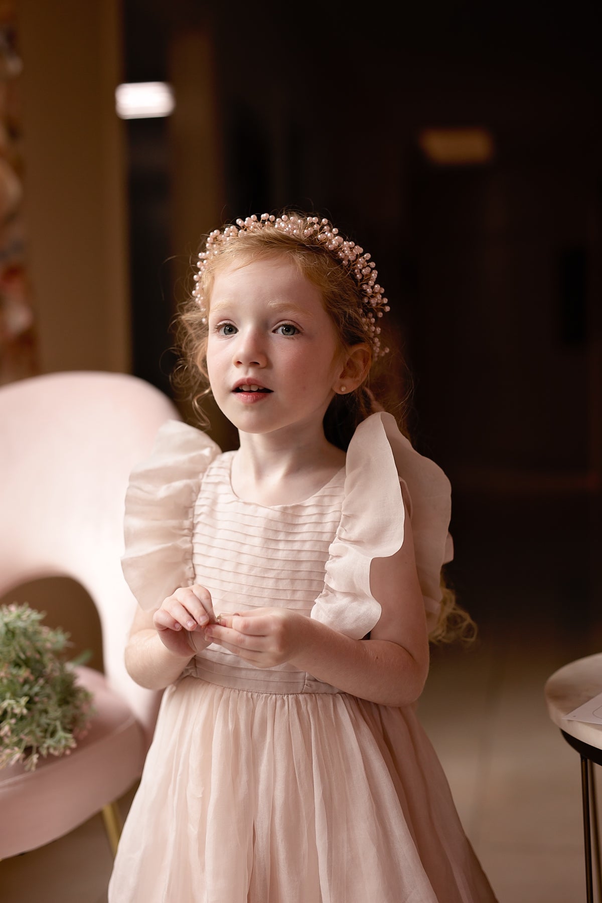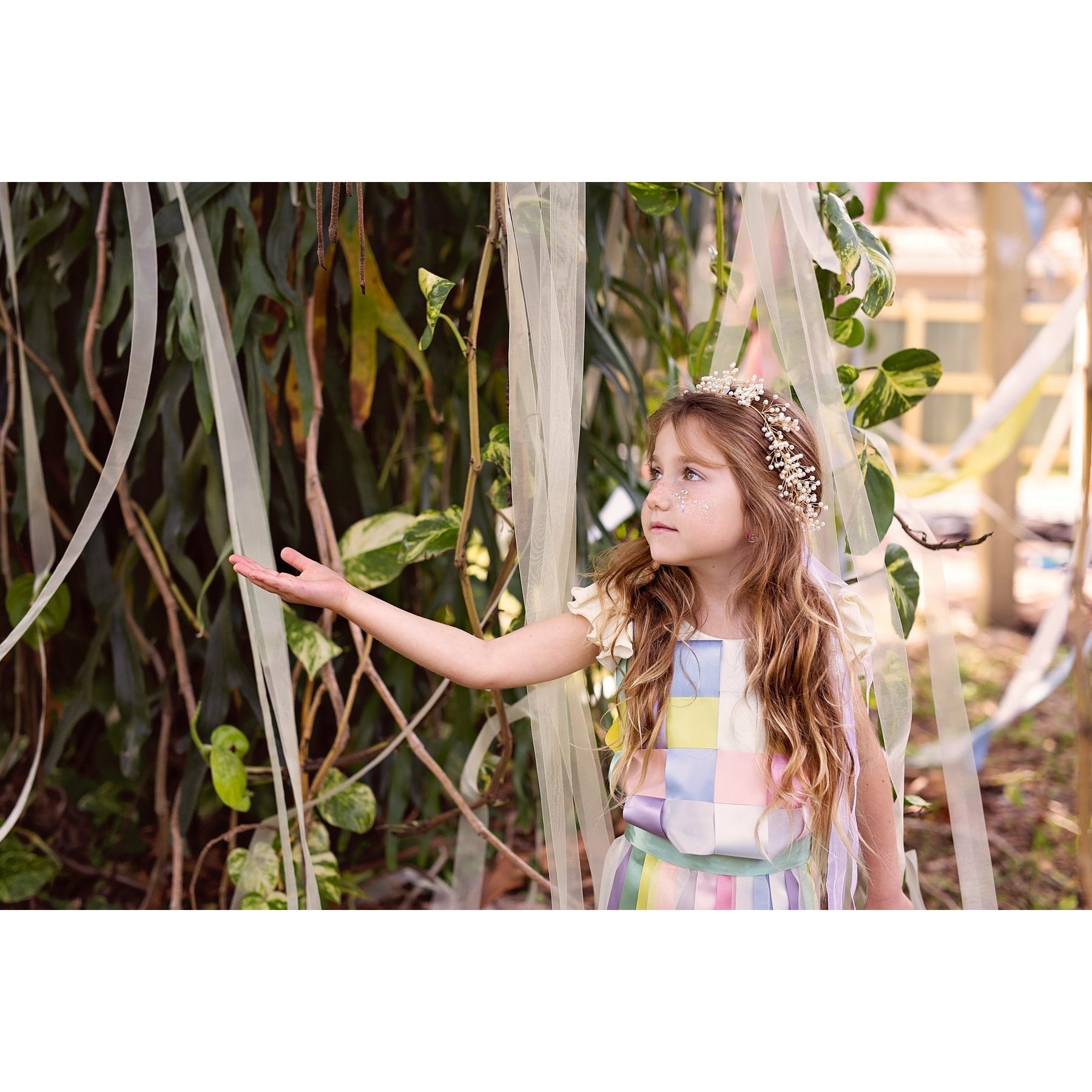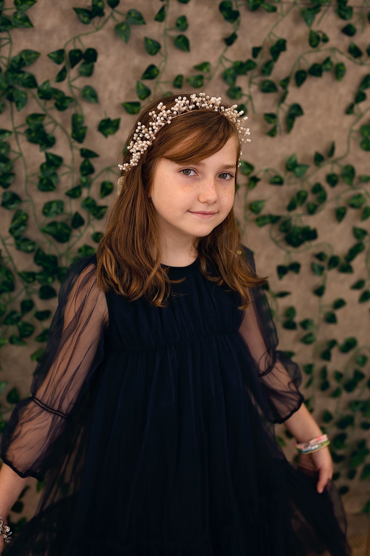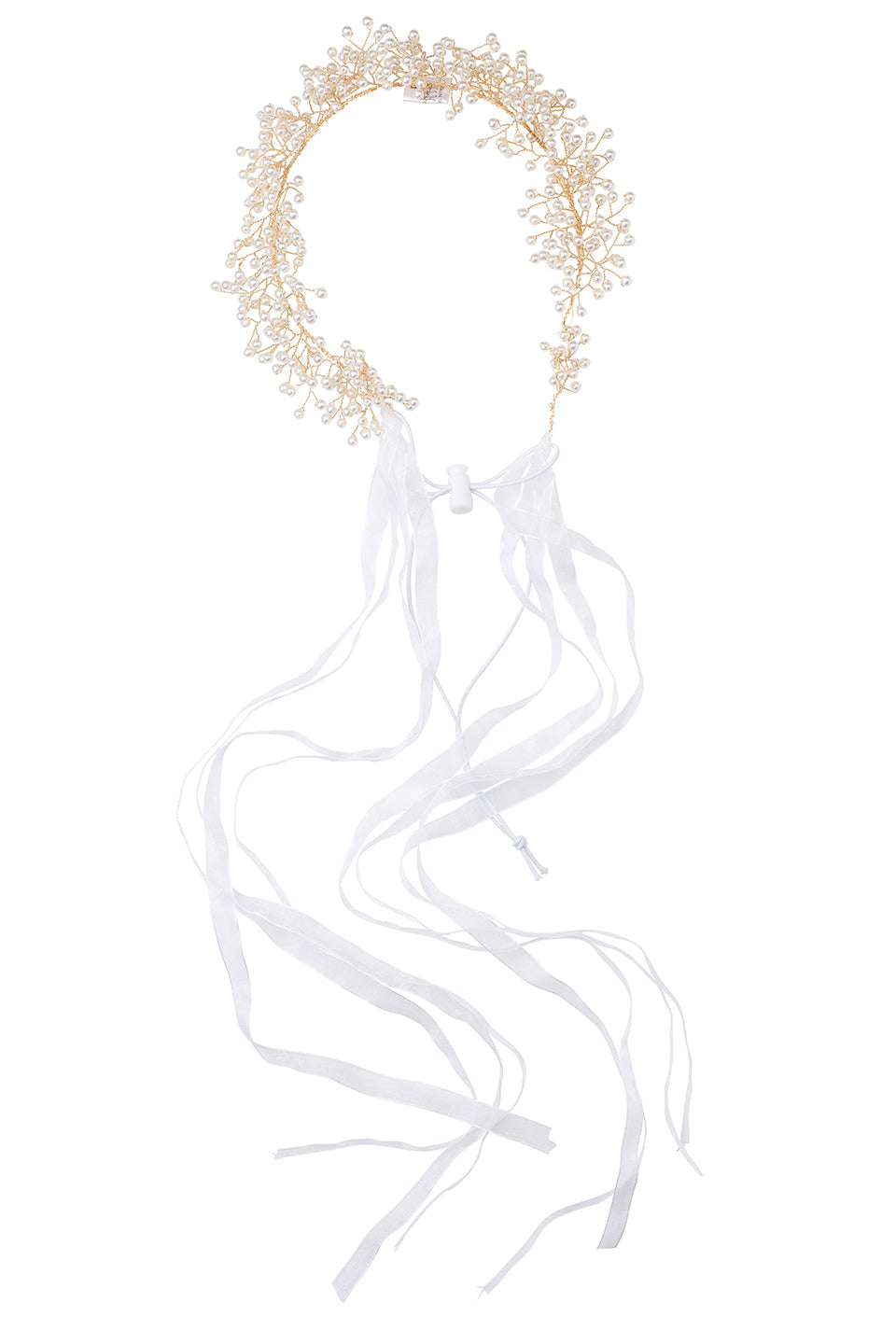 Pearls at the ends of twisted wire creating a full wreath of clustered pearls