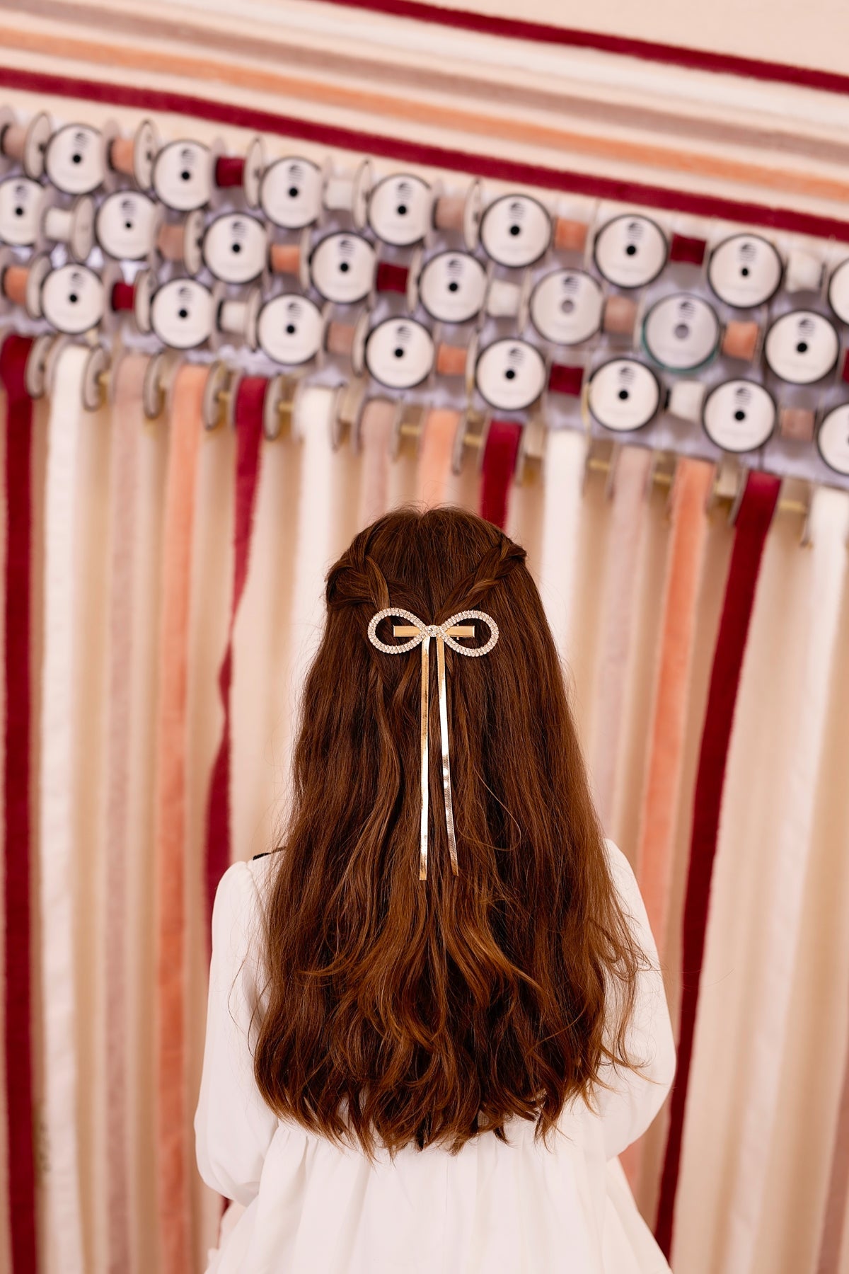 This one's a cross between our popular Dainty Fairy Bow Clip and our Queenie Collection. Love it! It's about 7.25" long.