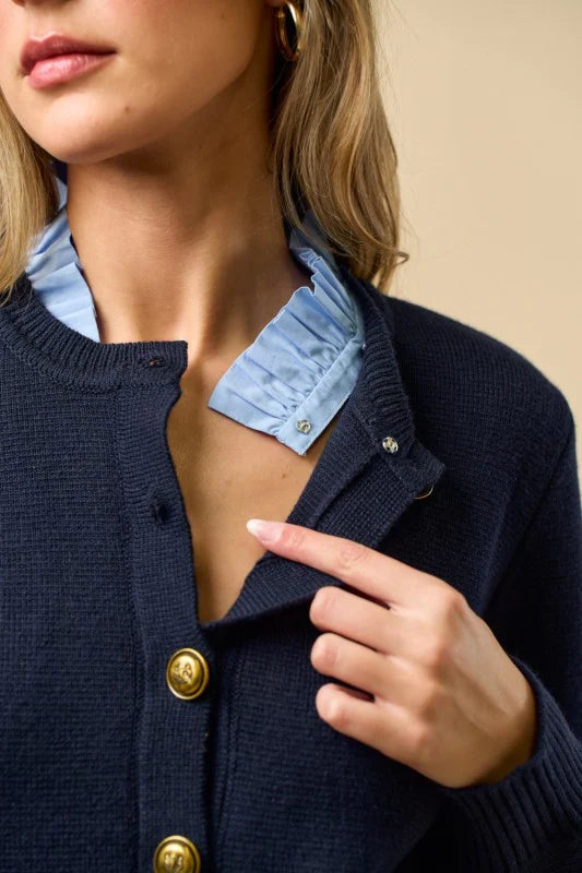 Sophisticated and endlessly stylish, the Felicity Cardigan Top elevates the classic button-down with luxurious gold buttons and a detachable collar for versatile, statement-making style
