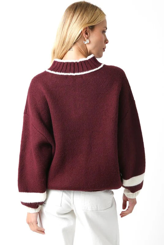The Rugby Sweater is a modern take on a classic, featuring a half-zip neckline and long sleeves in a soft, cozy knit