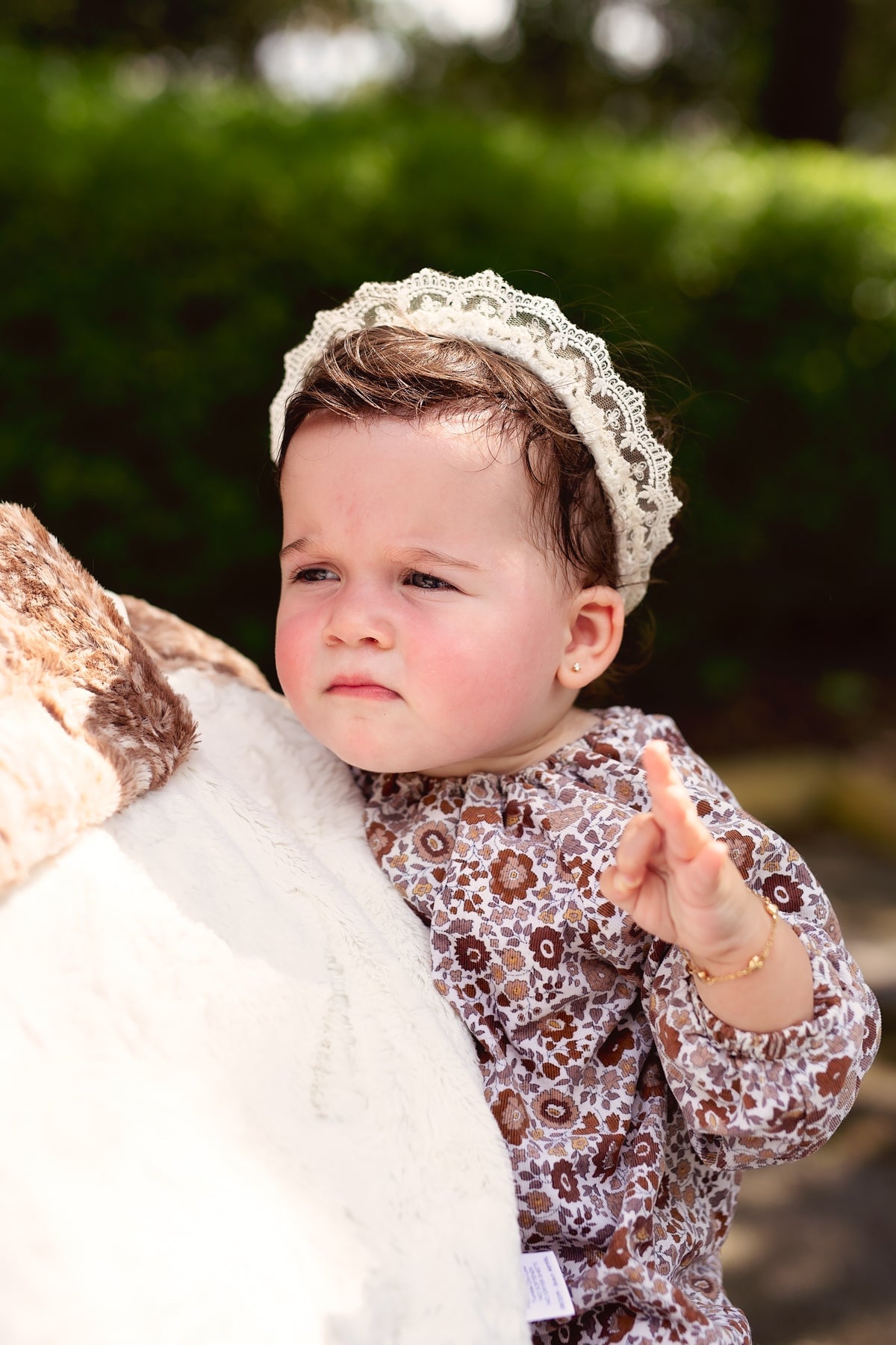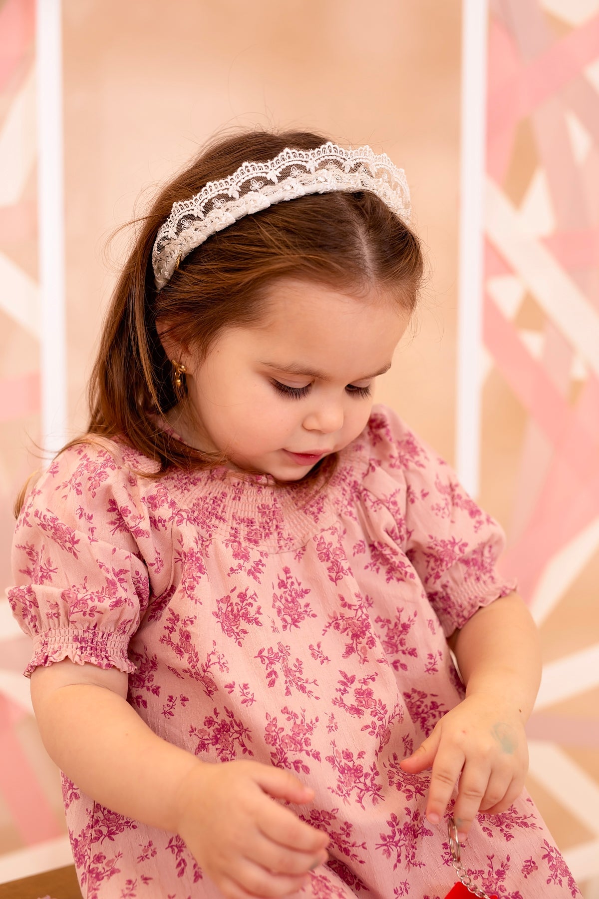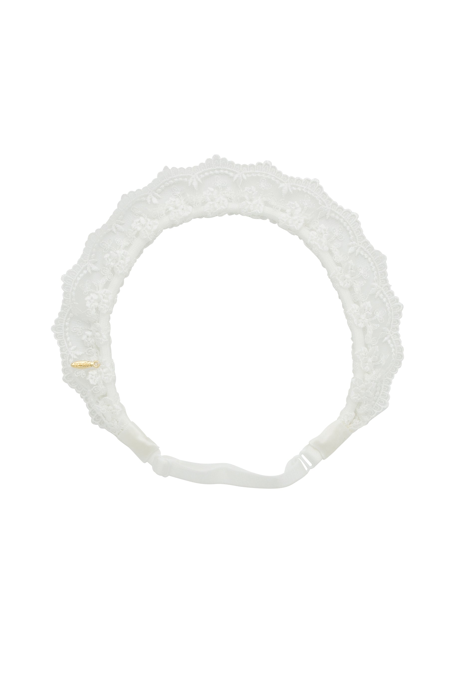 A dainty crown made out of beautiful lace on an adjustable wrap!
