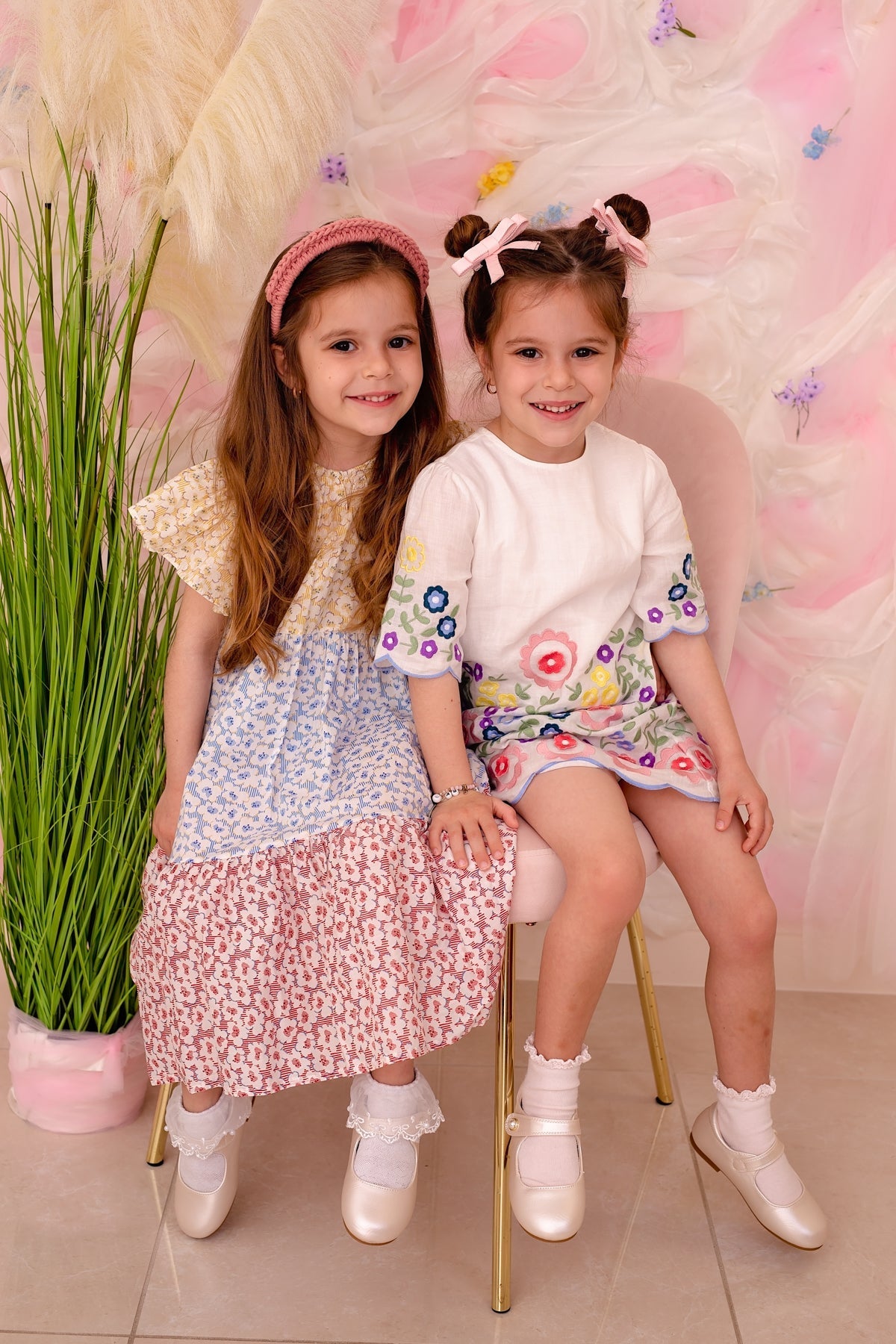 To say we spent a lot of time sourcing the right threads for this style would be an understatement! In the end, we settled on two different threads and choose colors from both of them. We sourced the threads in Mexico and Brazil. Then, we had each of these macrame styles handmade by women in Colombia. The Links styles come in a hard headband and also a baby adjustable wrap. Our wraps can fit baby all the way to adult, though!