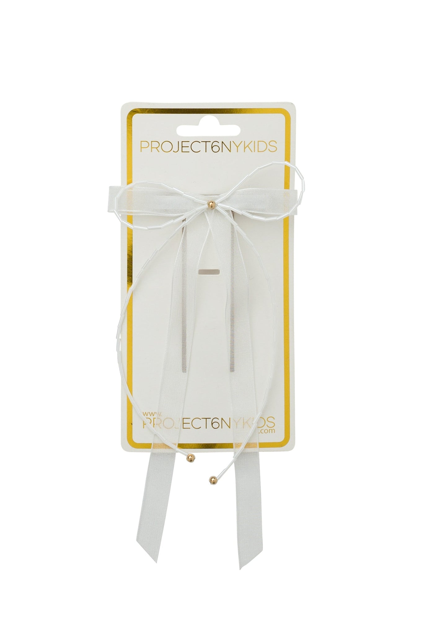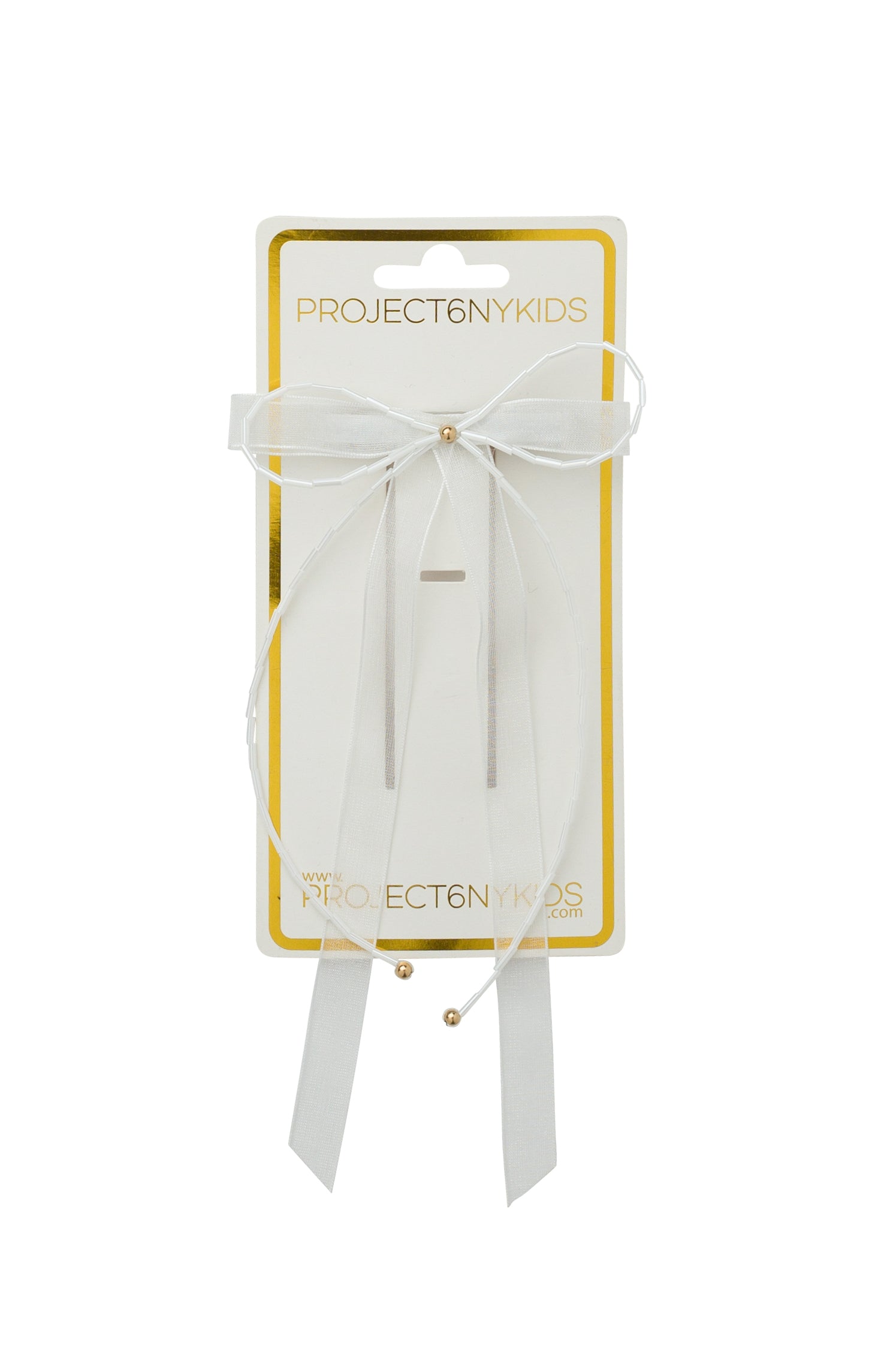 I've been sampling longer bows with a blend of different ribbons and fabrics together. This one was the final winner for this season! It's dainty and angelic and adds so much to your outfit, trust me! It's about 7" long.