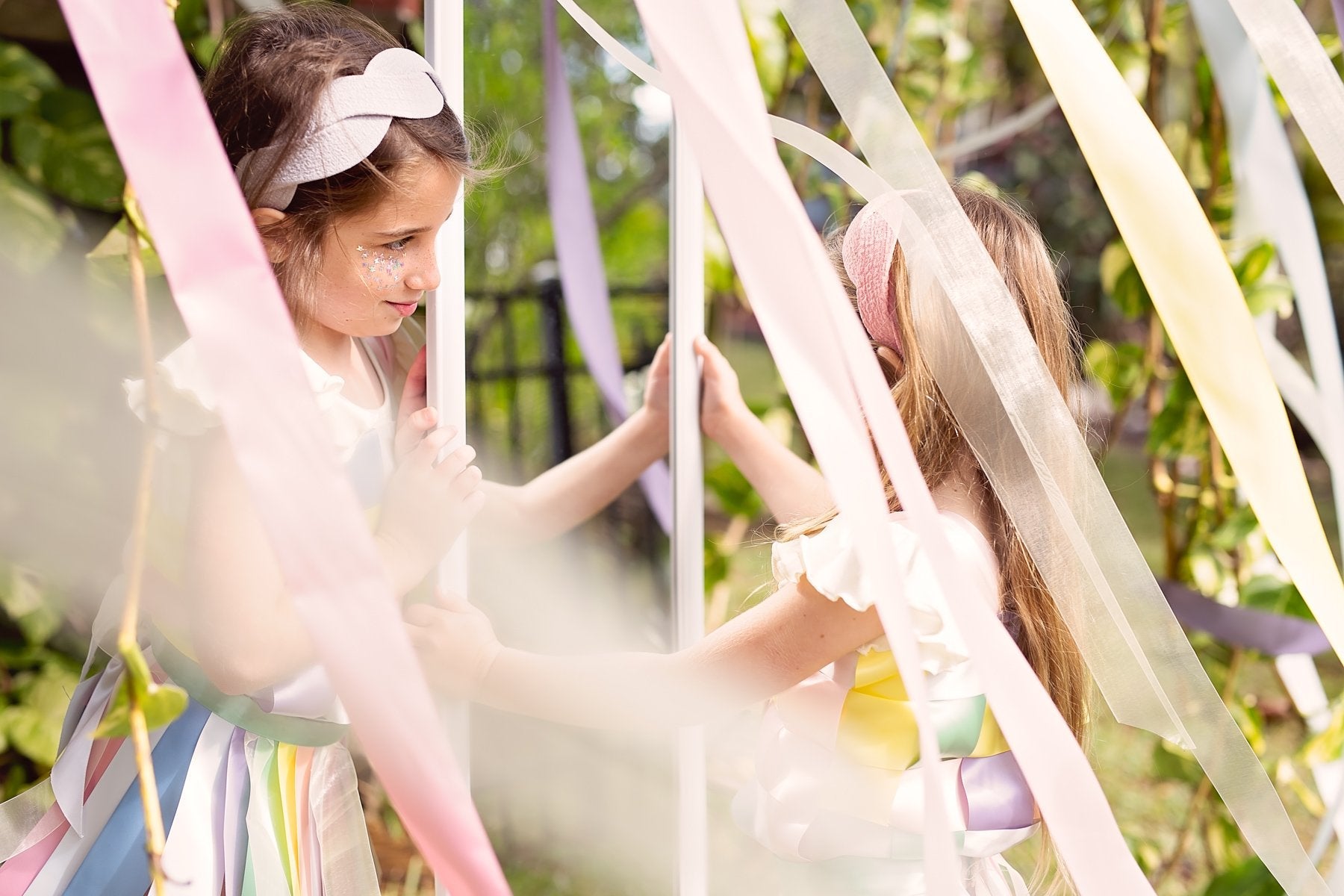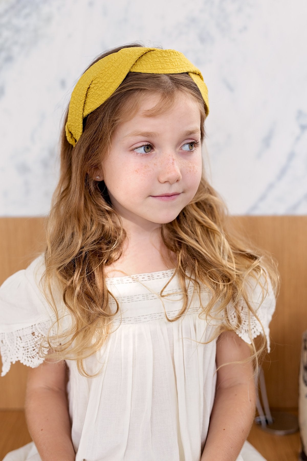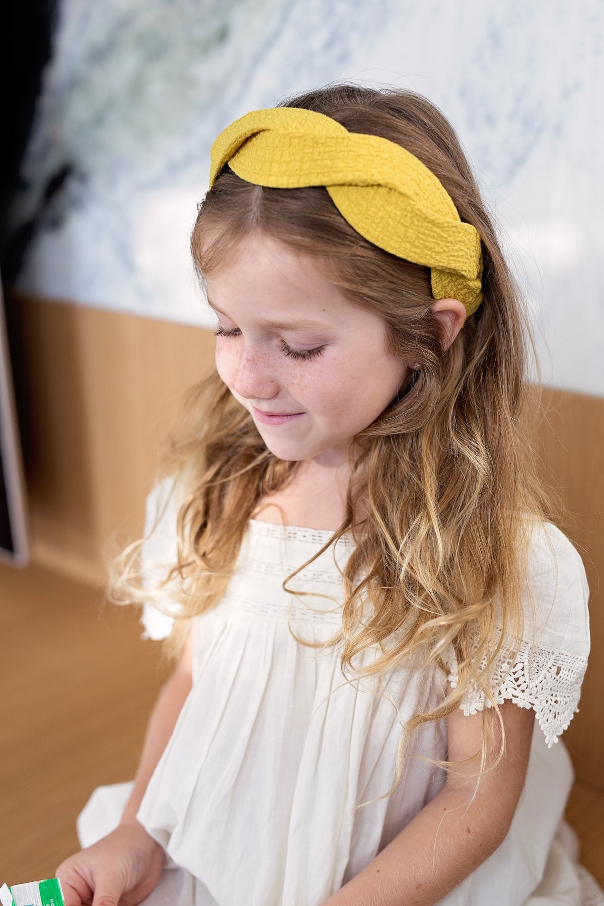 Two Intertwined twisted headbands wrapped in a muslin gauze fabric creating a unique octagon shape when worn.