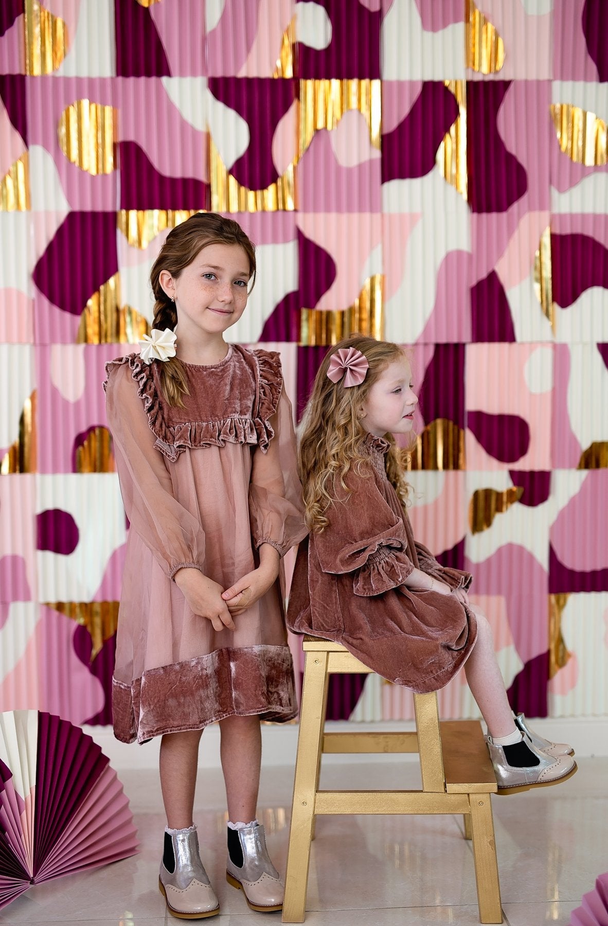I've been playing around a lot with pleating and the different ways to ruffle fabric. So I picked up some satin ribbon and started folding. I had no vision in mind, I was really just playing. And then boom, somehow a couple styles popped out! I was obsessed and based our entire photoshoot backdrop off of it! This clip is similar to our accordion clip, but lays differently in the hair. (Note the placement of the clip is on the back. I love the way it looks over a ponytail)