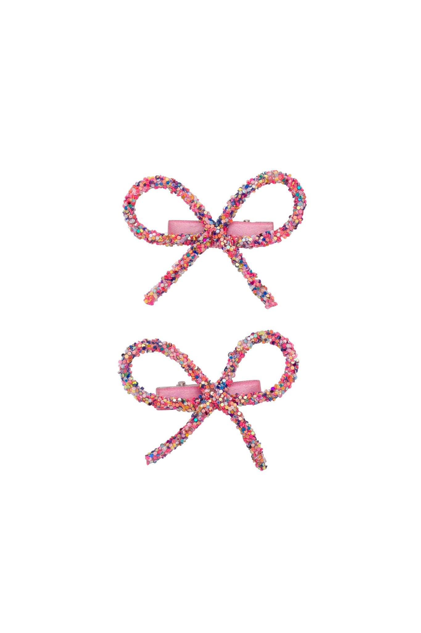 Mini Glitter Bows Clip Set of 2 - Pink Rainbow