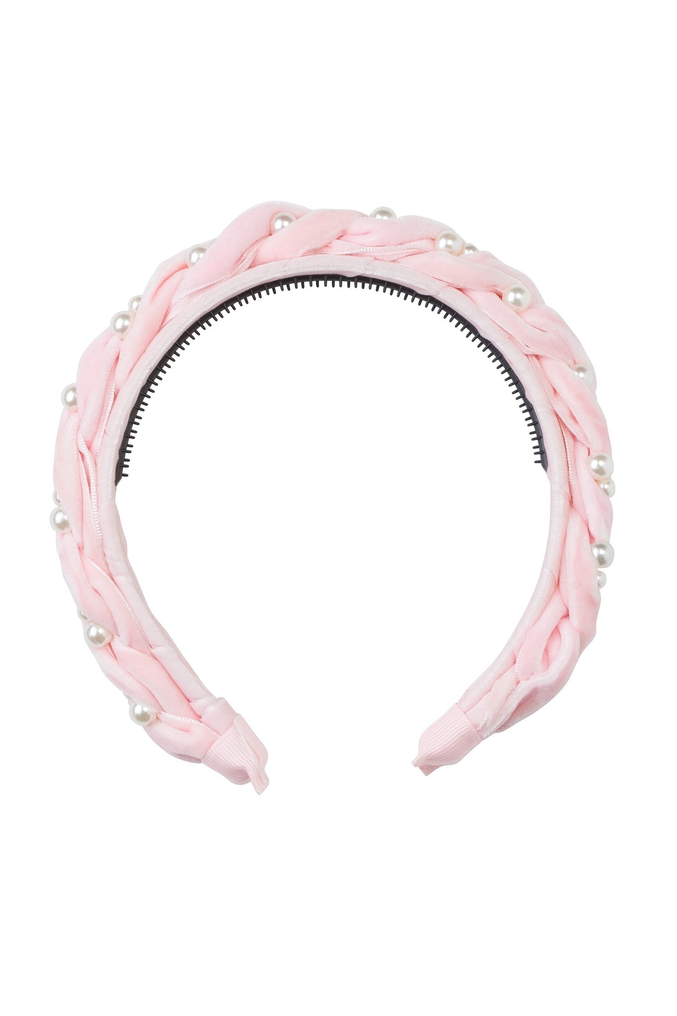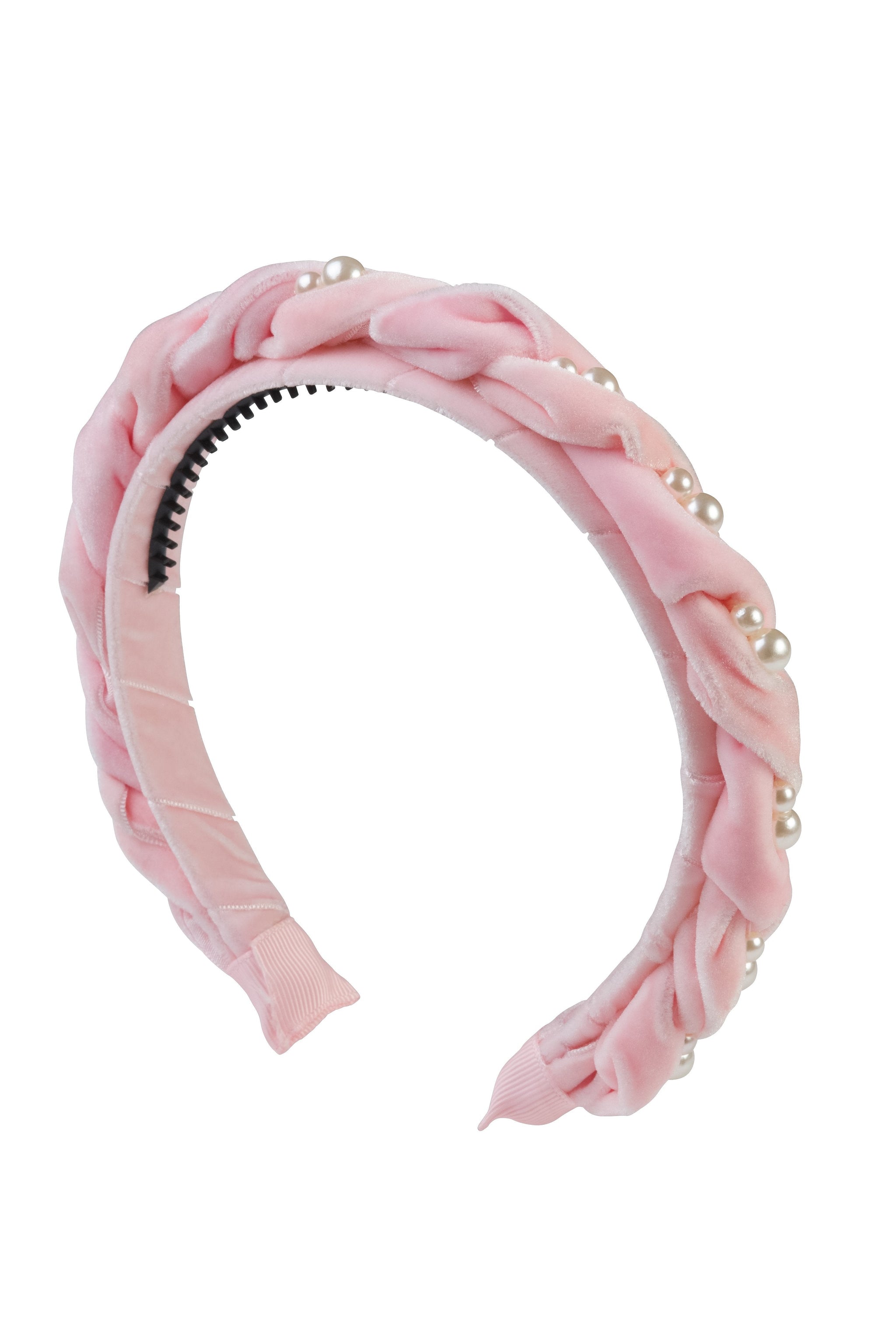 Velvet Ribbon twisted with double pearl embellisments on a headband