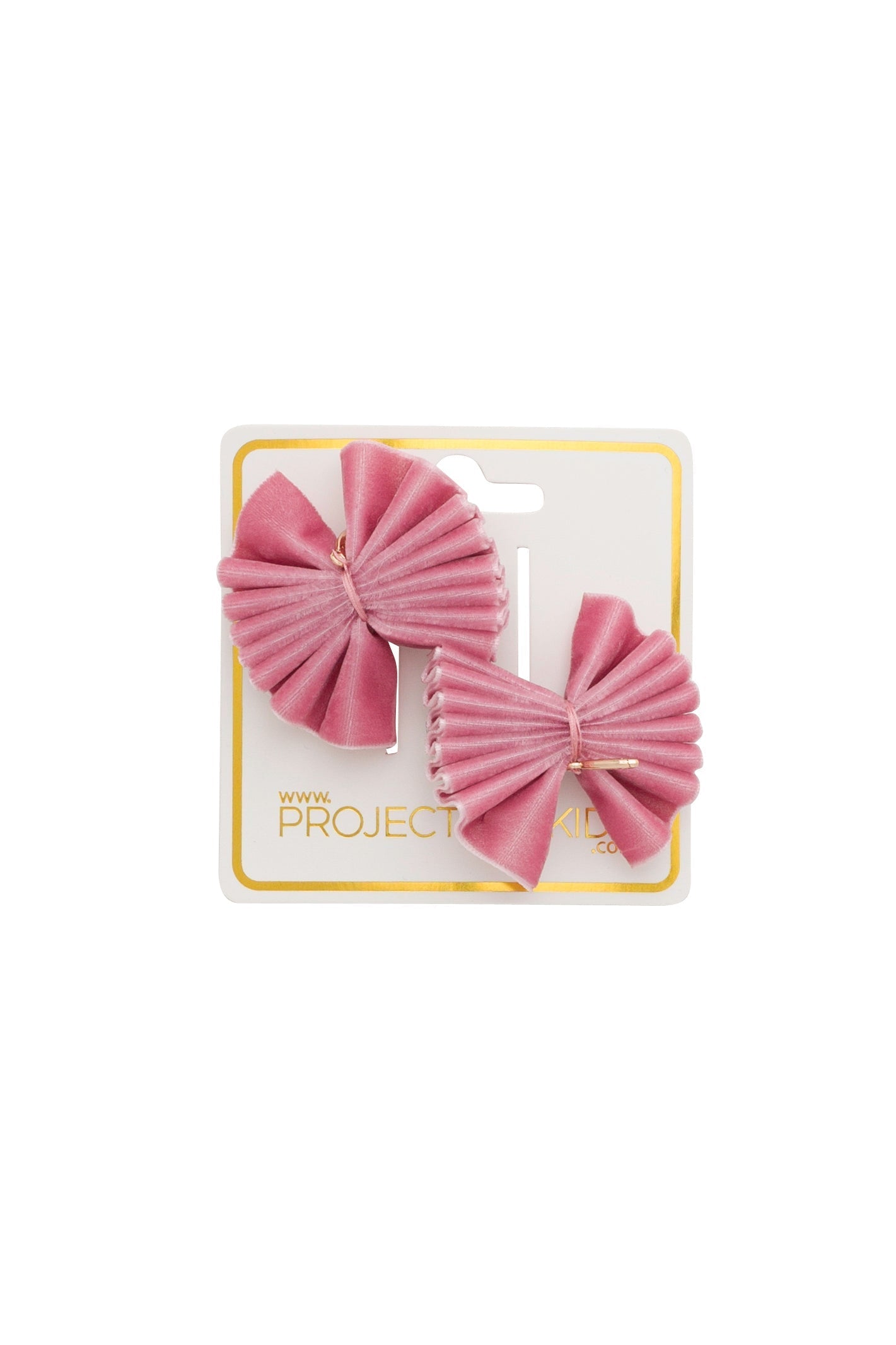 Velvet Pleated Butterfly Bow Clip Set - Rose (Handmade in the USA!)