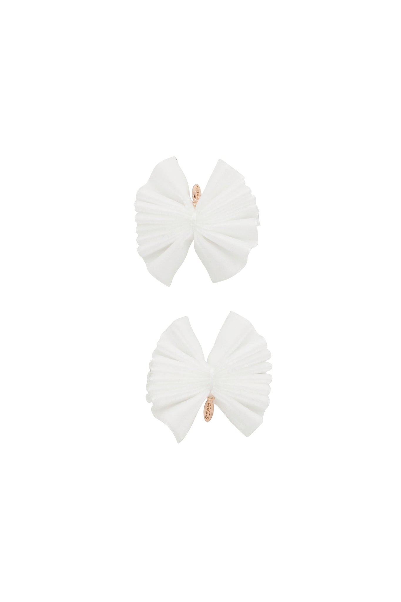 Velvet Pleated Butterfly Bow Clip Set - White (Handmade in the USA!)